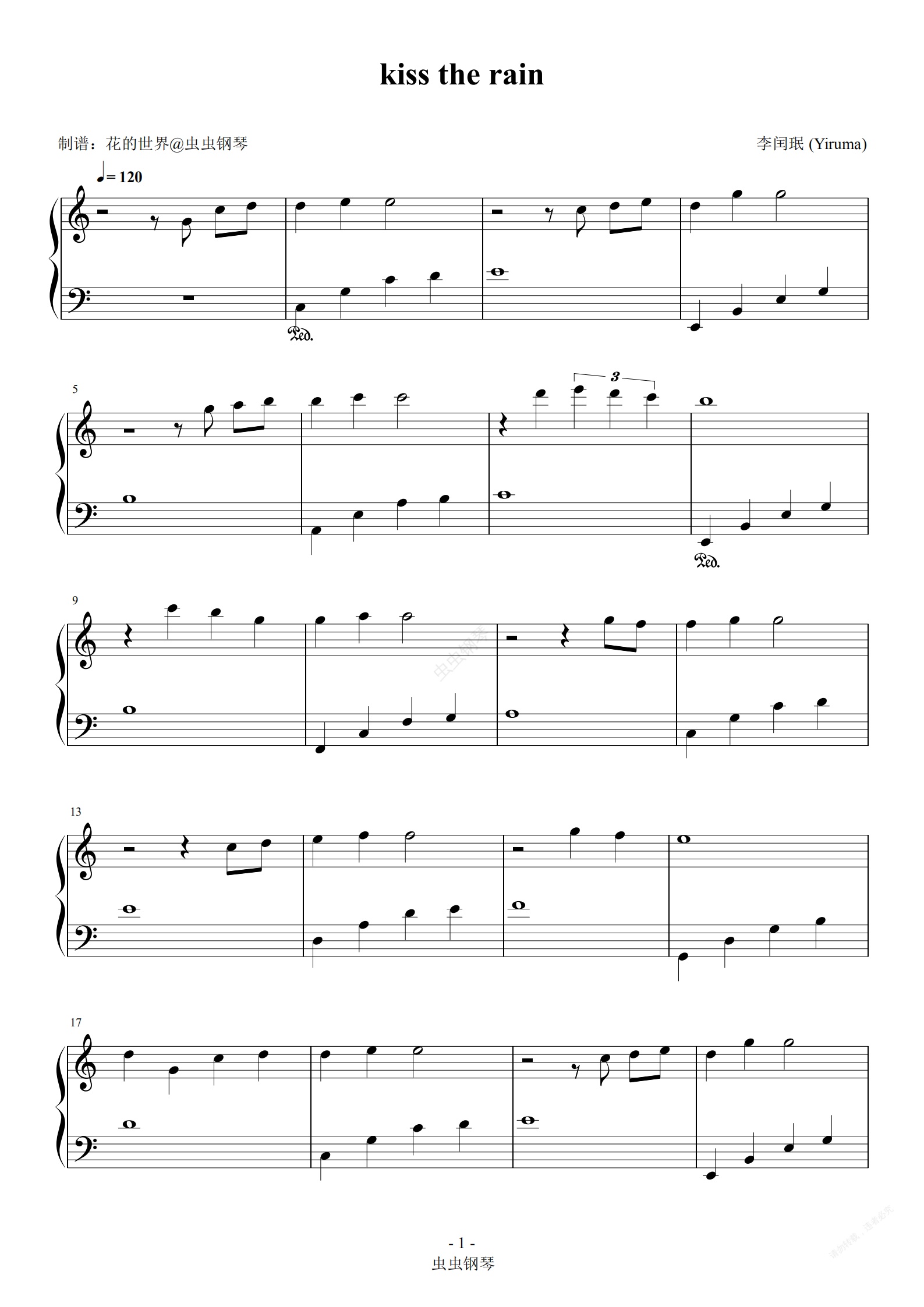 钢琴谱:雨的印记Kiss The Rain C调简单版本容易弹 李闰珉