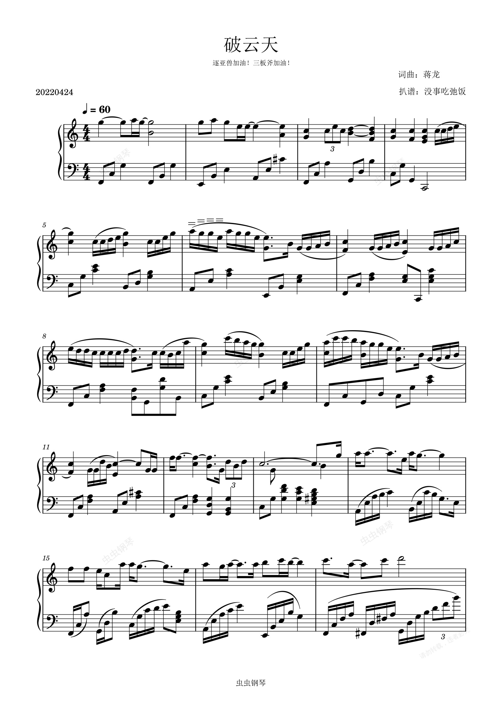 钢琴谱:特战荣耀 《破云天》-蒋龙