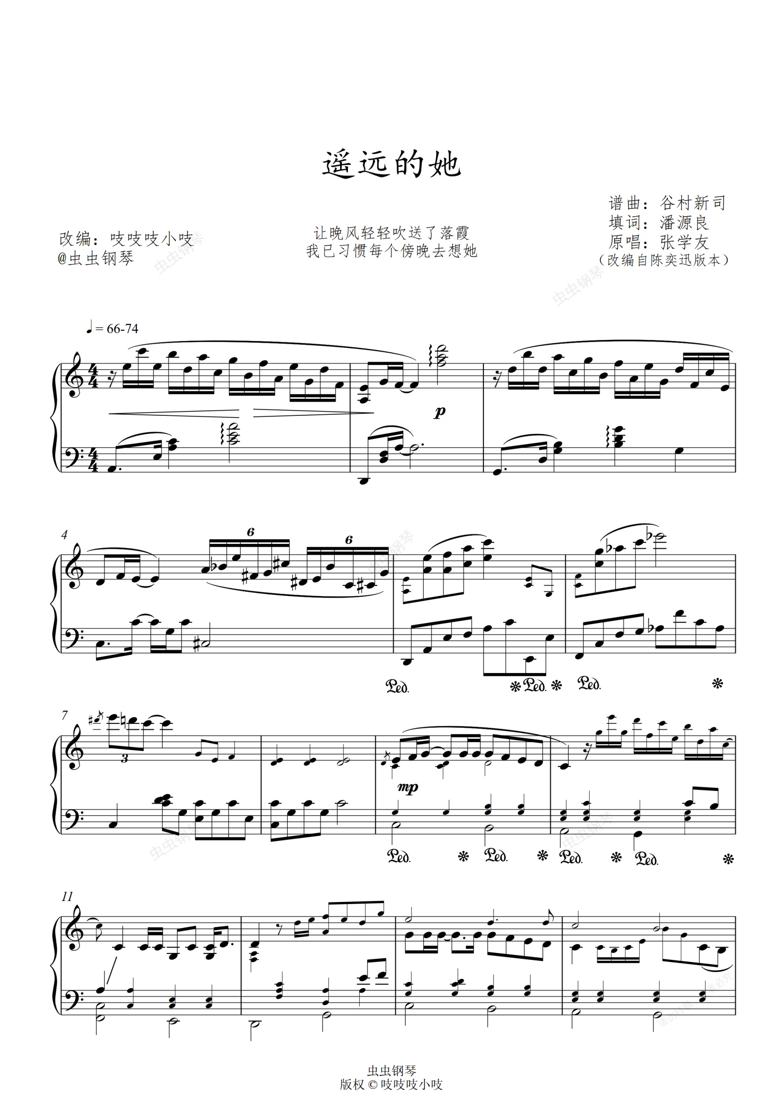 钢琴谱:遥远的她 原调完整改编版(张学友/陈奕迅)