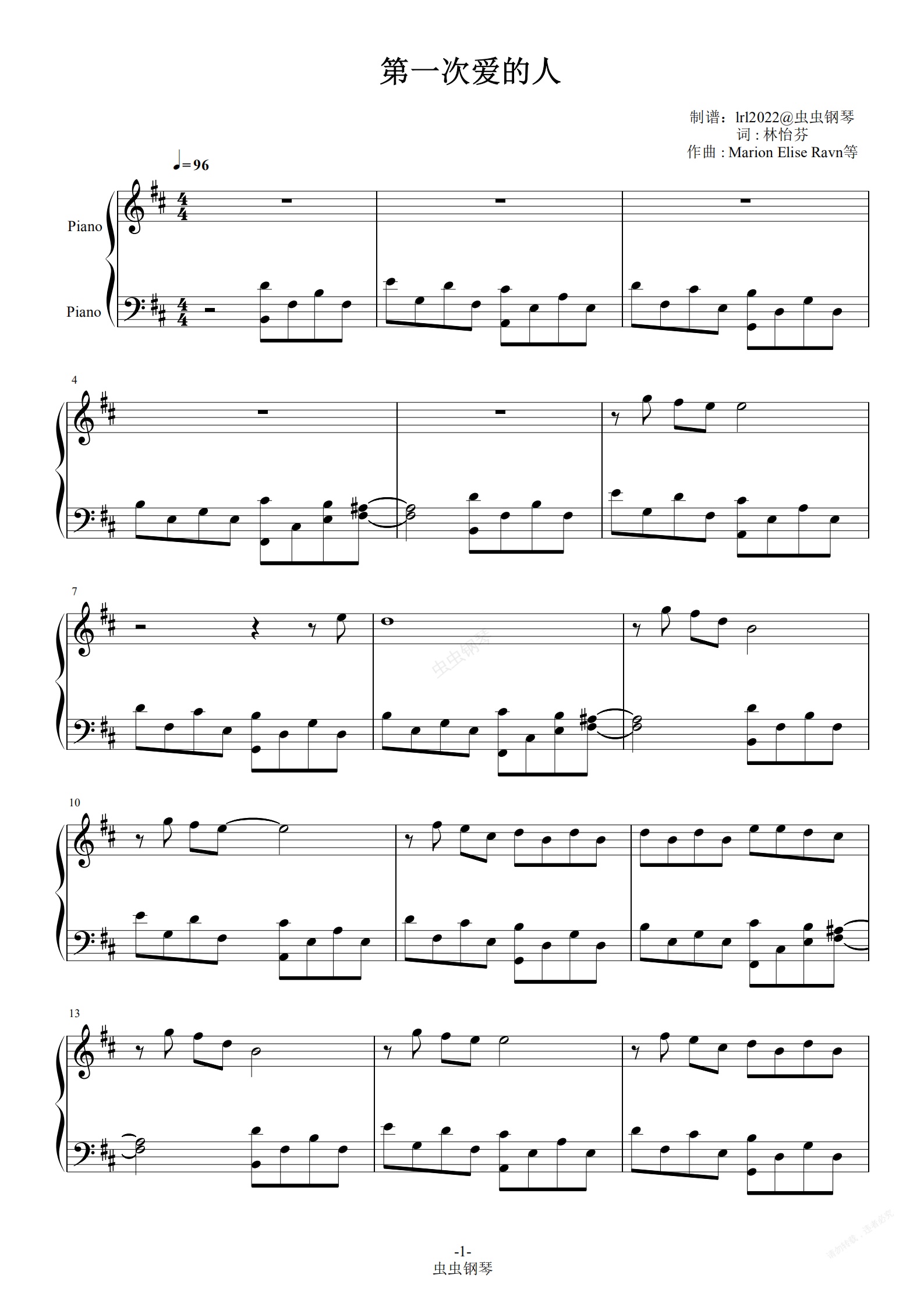 钢琴谱:第一次爱的人-王心凌-五线谱-简谱-钢琴谱