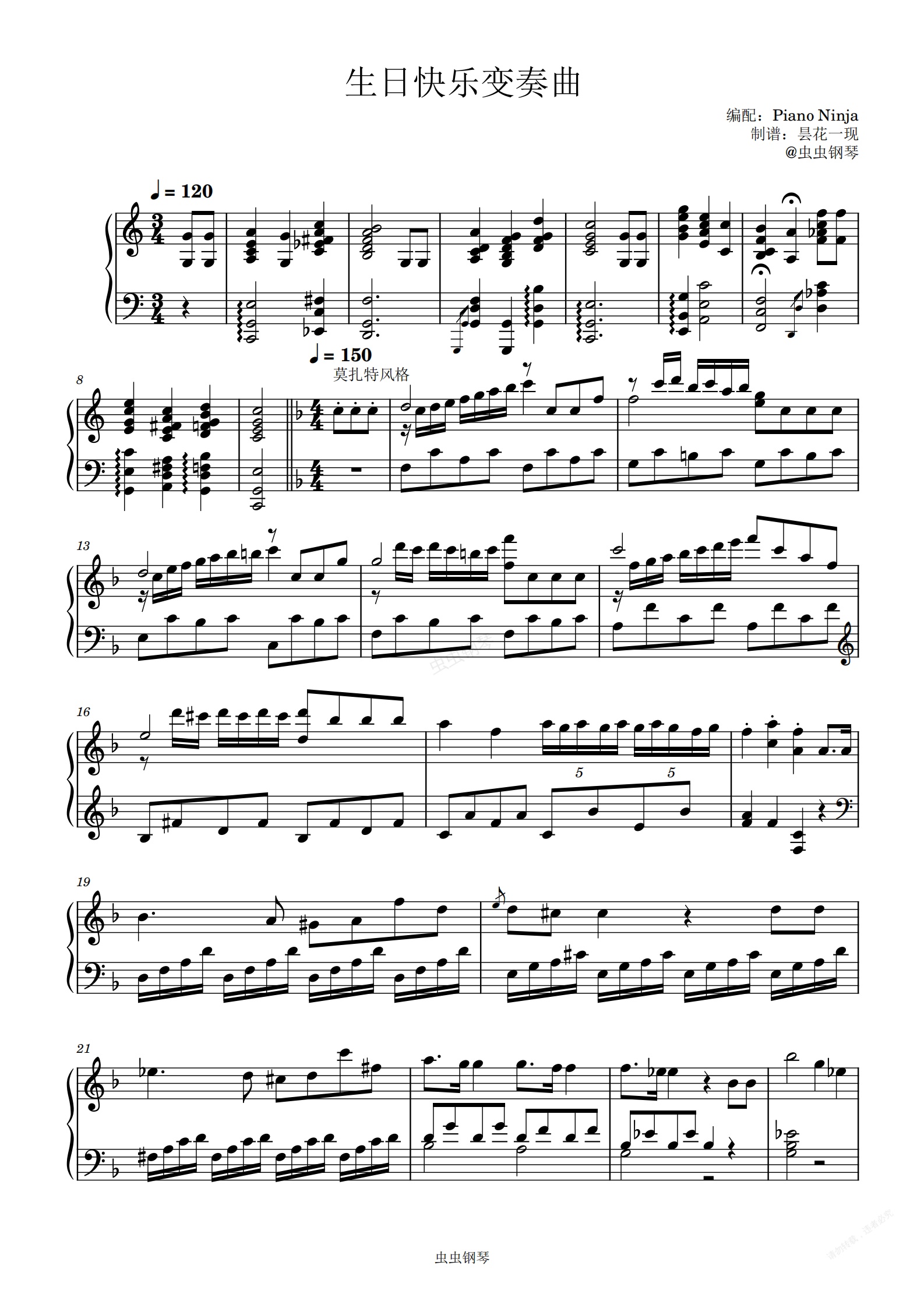 钢琴谱:生日快乐变奏曲 3种作曲家的风格