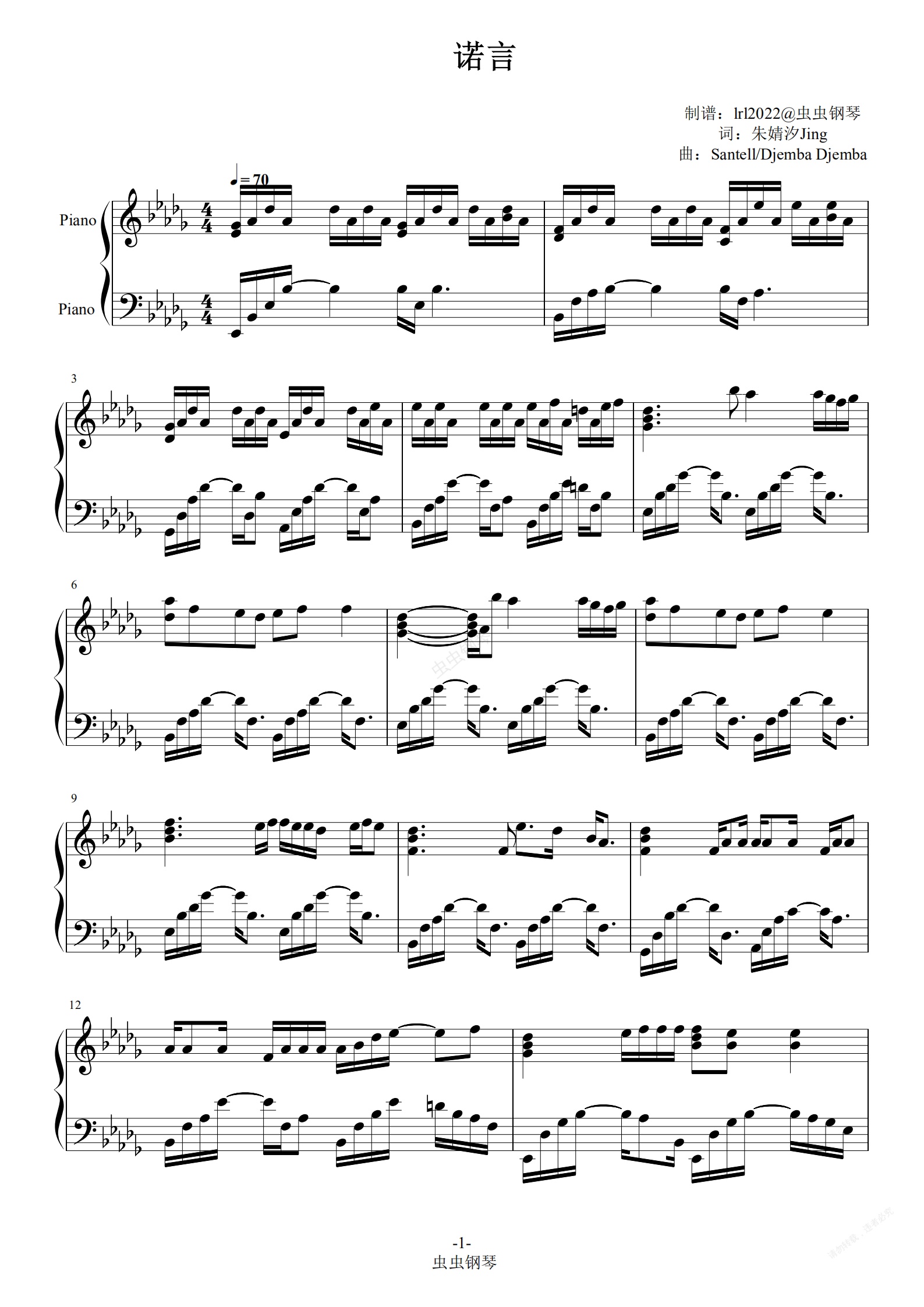 钢琴谱:诺言-鹿晗-五线谱-简谱-钢琴谱