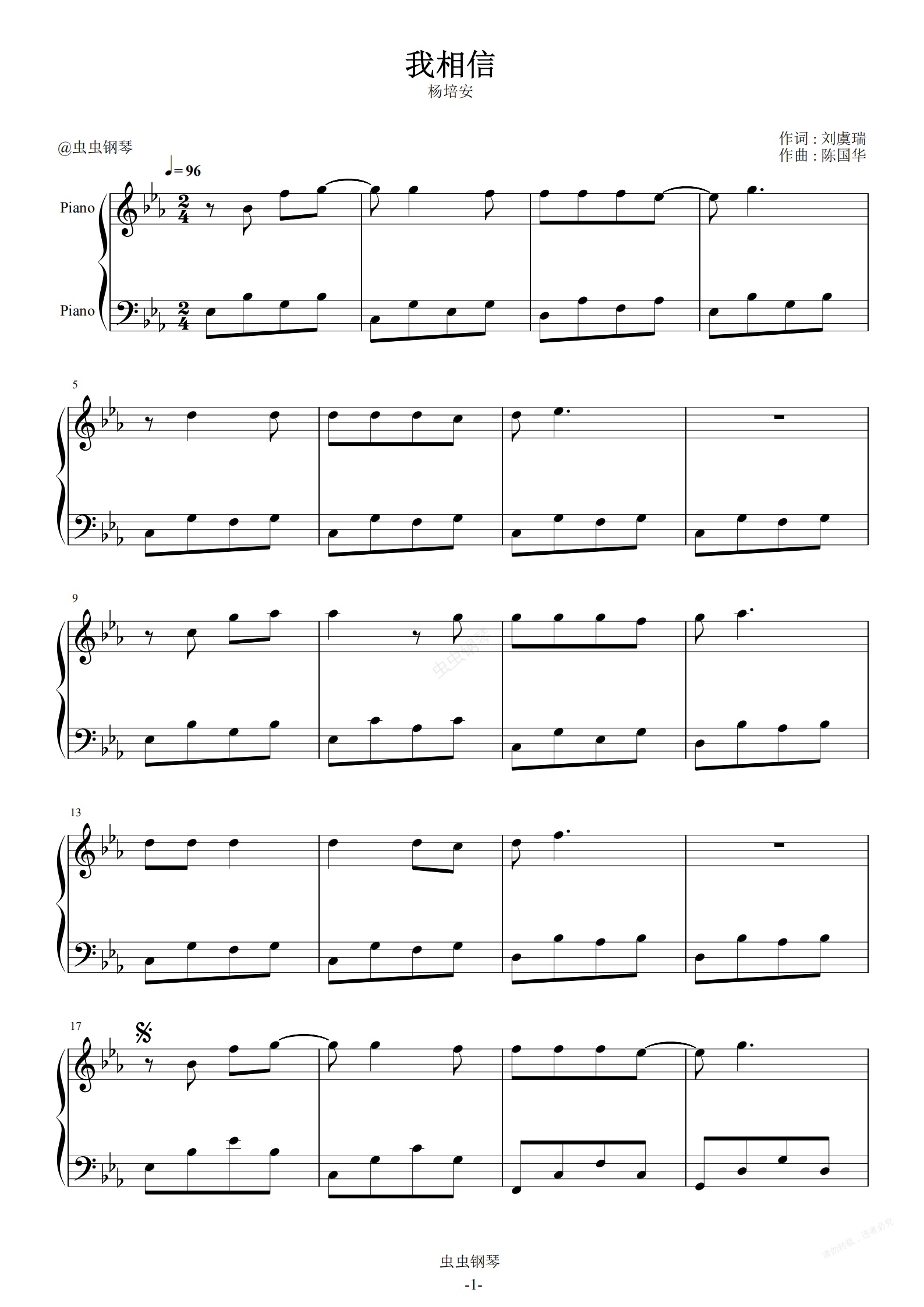 钢琴谱:我相信-杨培安-五线谱-简谱-钢琴谱