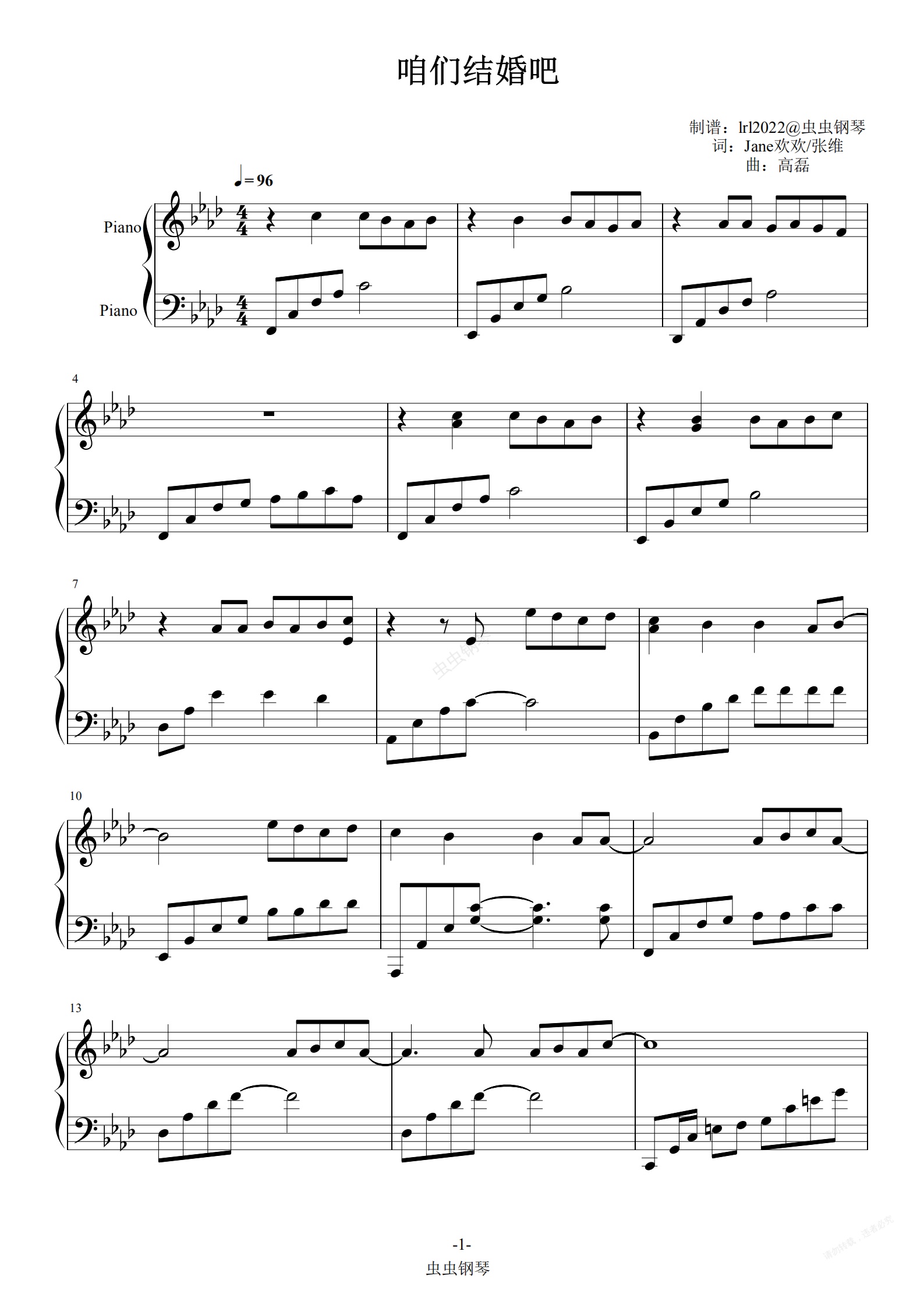 钢琴谱:咱们结婚吧-齐晨-五线谱-简谱-钢琴谱