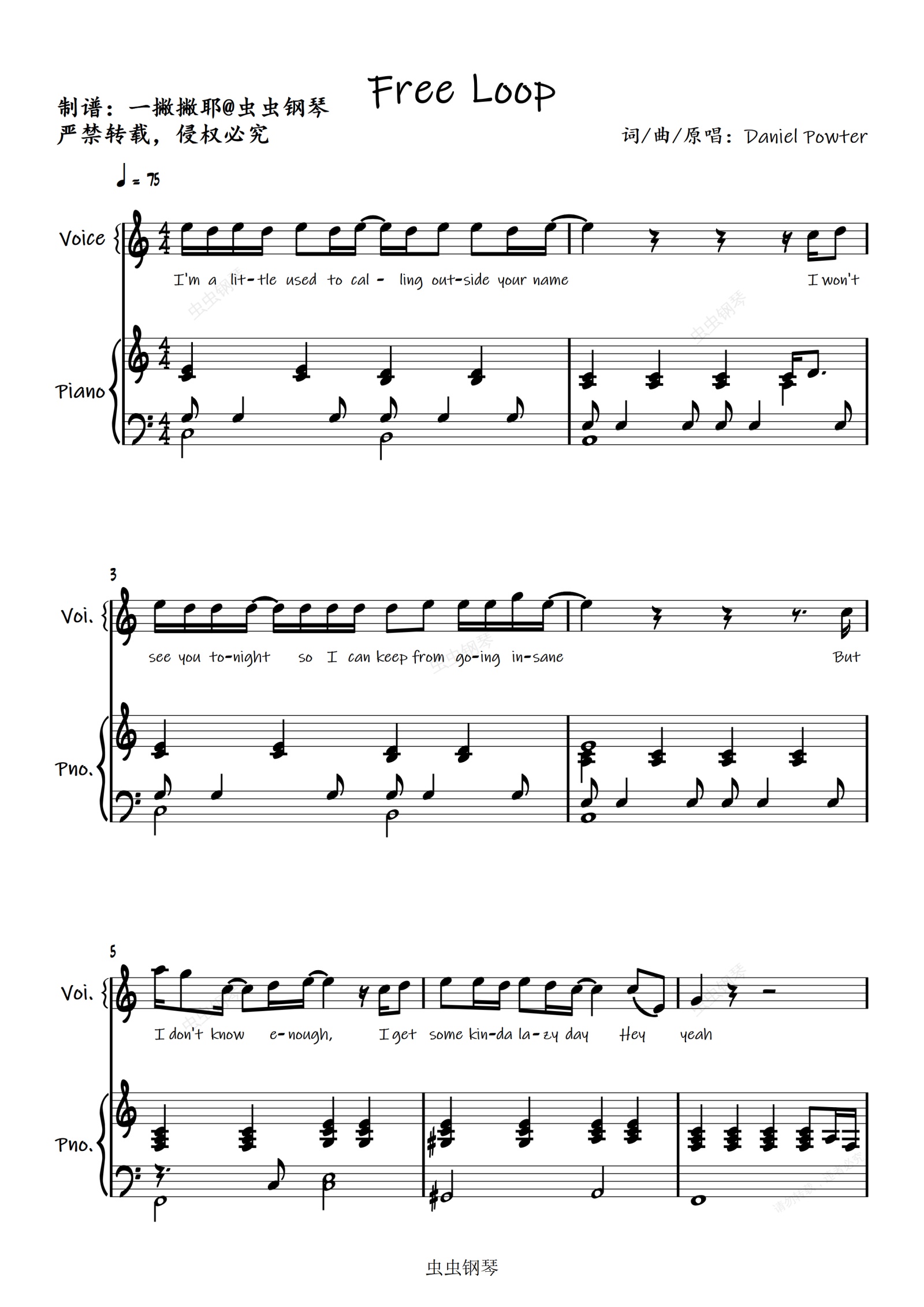钢琴谱:【极限还原弹唱】Free Loop-Daniel Powter「一撇撇耶」
