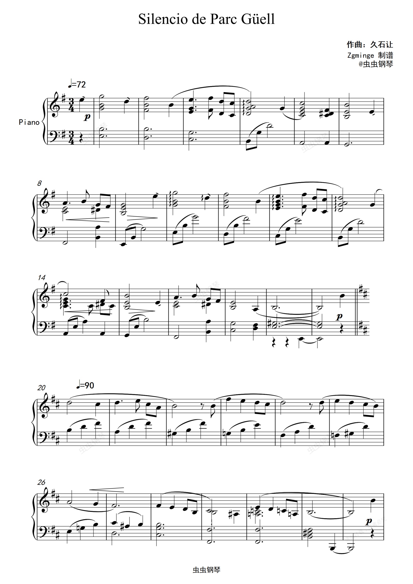 钢琴谱:Silencio de Parc Güell -完整版