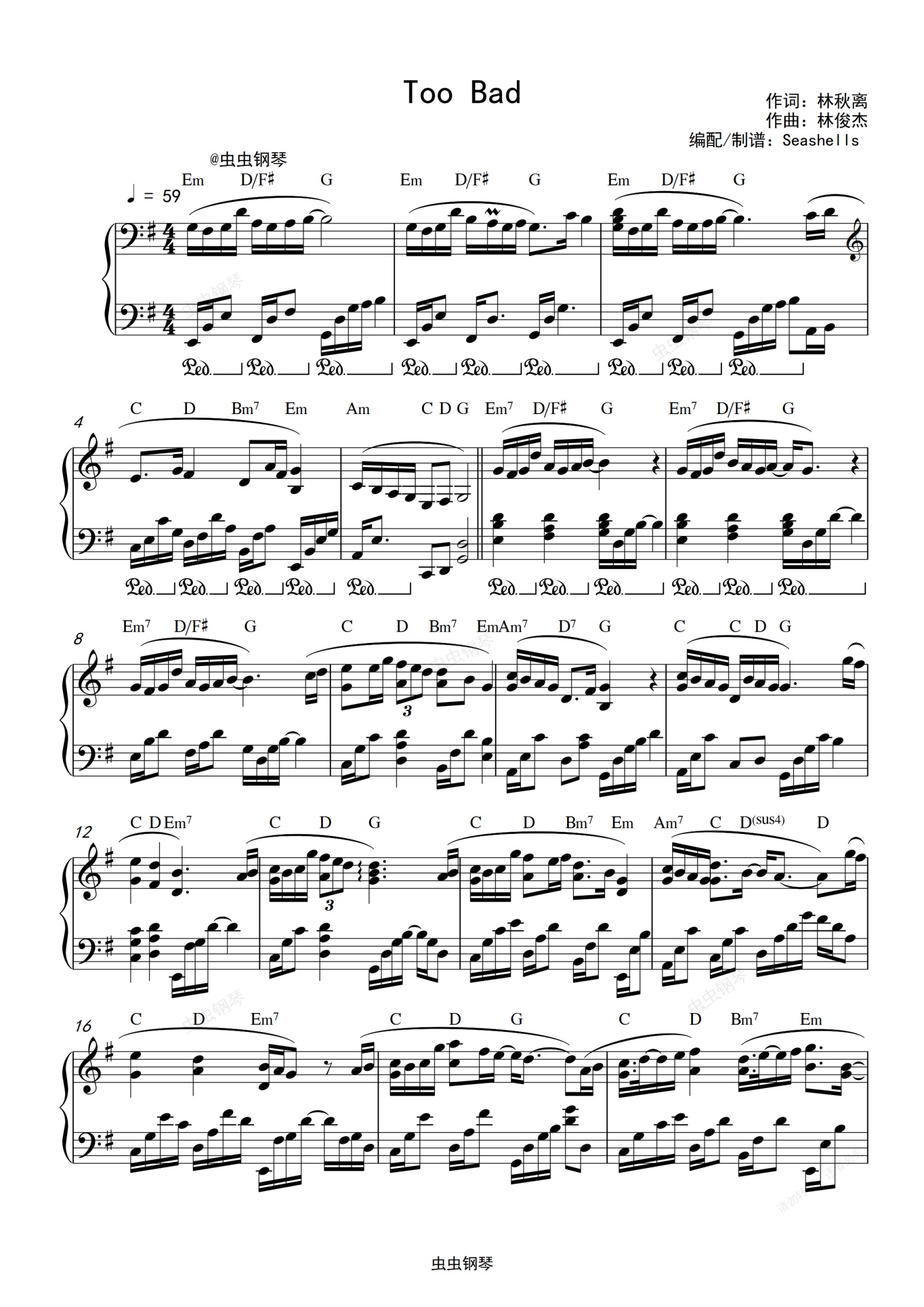 钢琴谱:林俊杰 - 《Too Bad》精编钢琴独奏