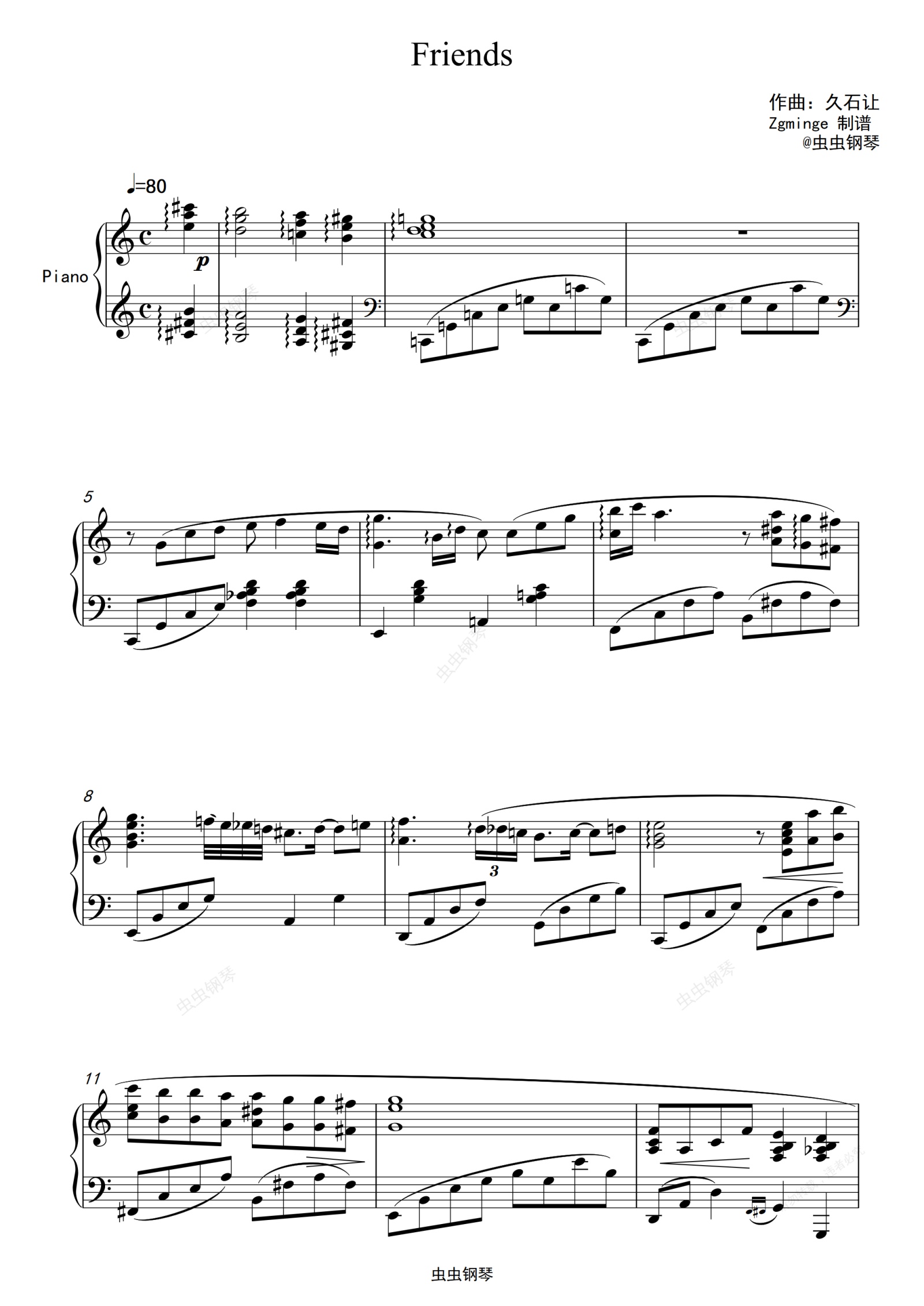 钢琴谱:Friends-久石让 (ひさいし じょう)