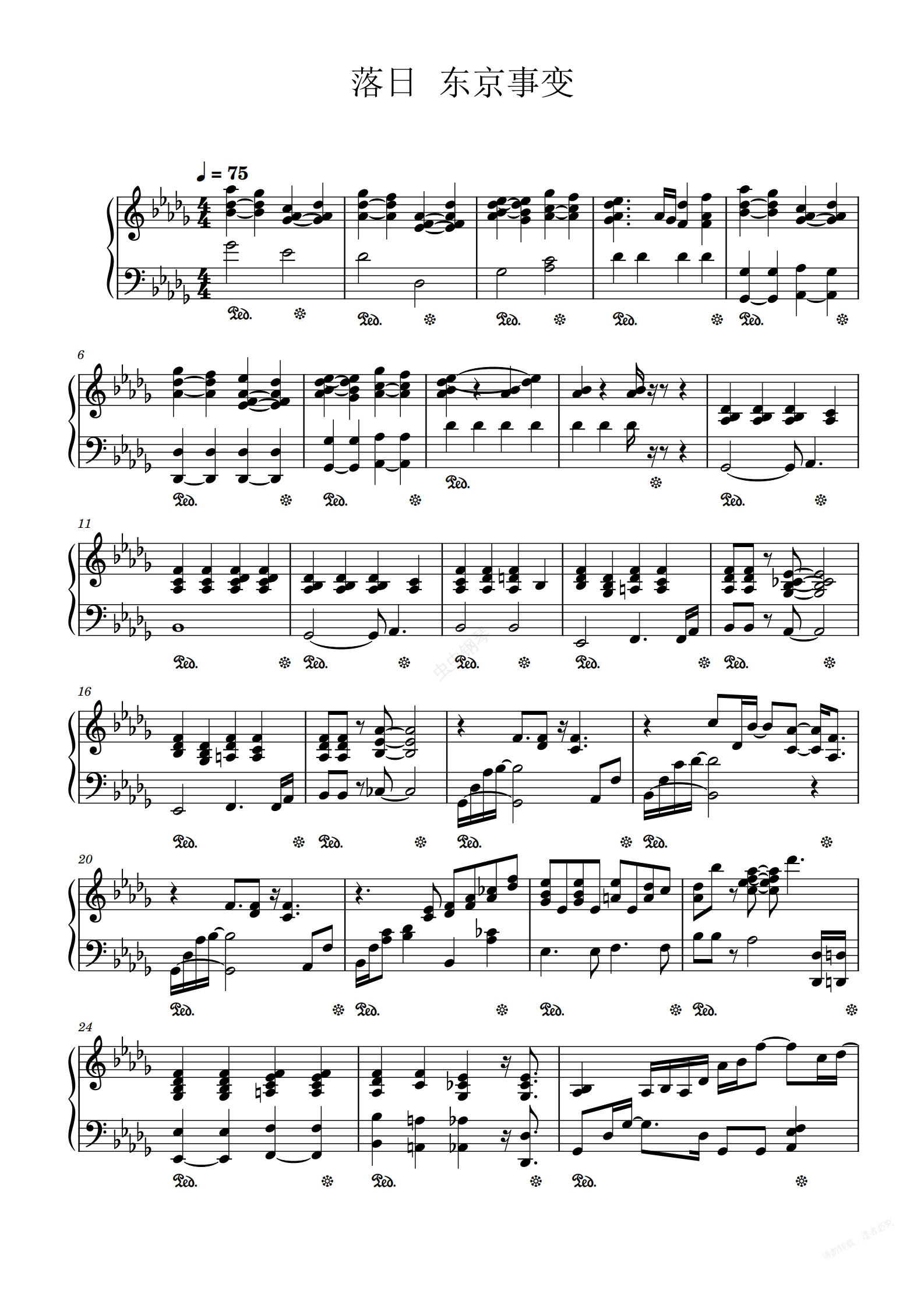 钢琴谱:落日 东京事变 现场版伴奏