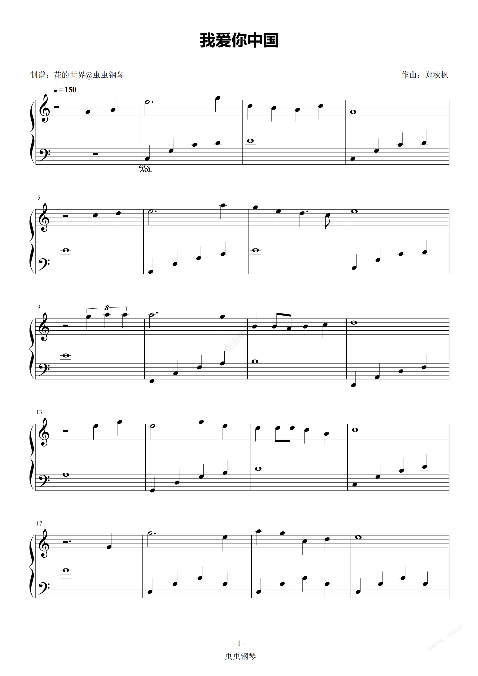 钢琴谱:我爱你中国 C调简单版本 容易弹  经典流行