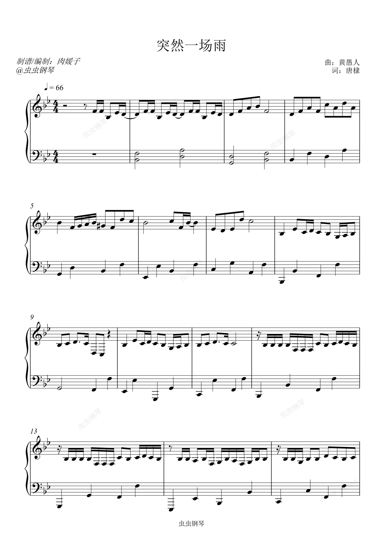 钢琴谱:突然一场雨 - 蓝心羽 【好听易弹独奏】
