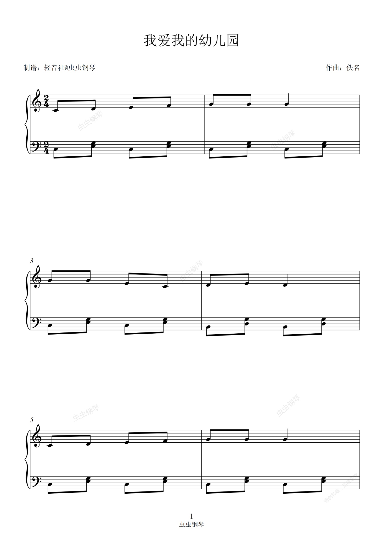 钢琴谱:《我爱我的幼儿园》简单易弹儿童初学好听
