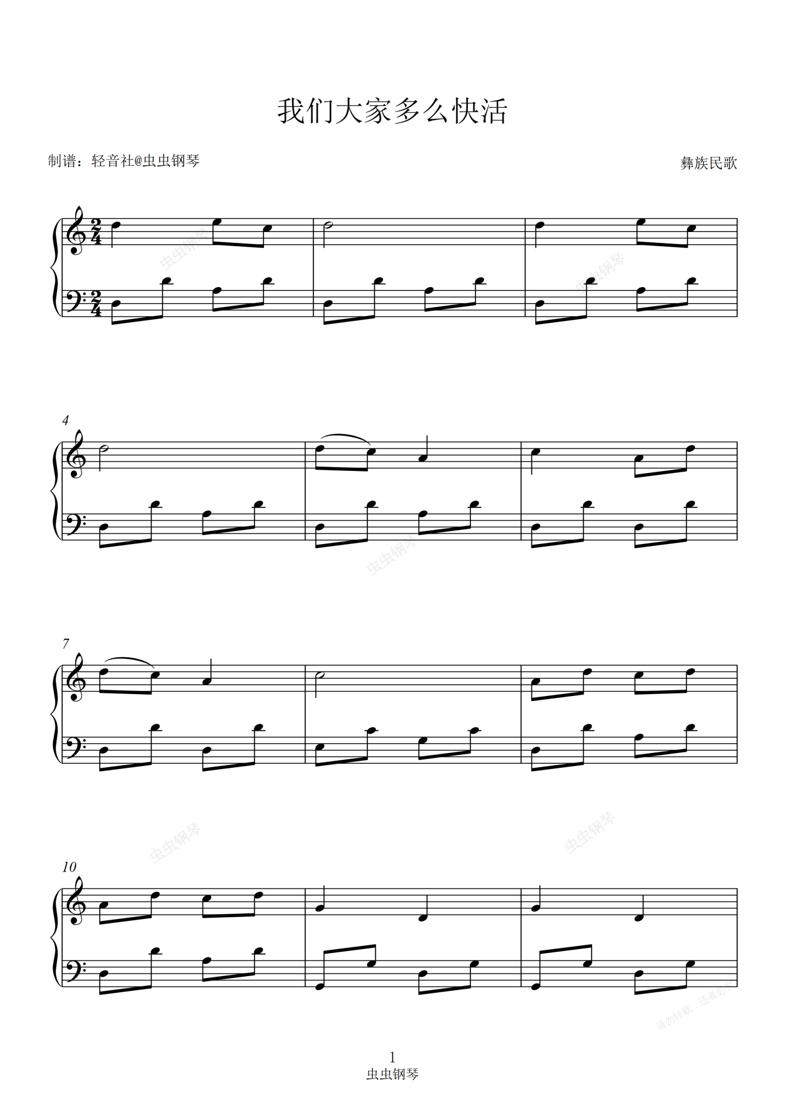 钢琴谱:《我们大家多么快活》简单好弹好听儿童初学