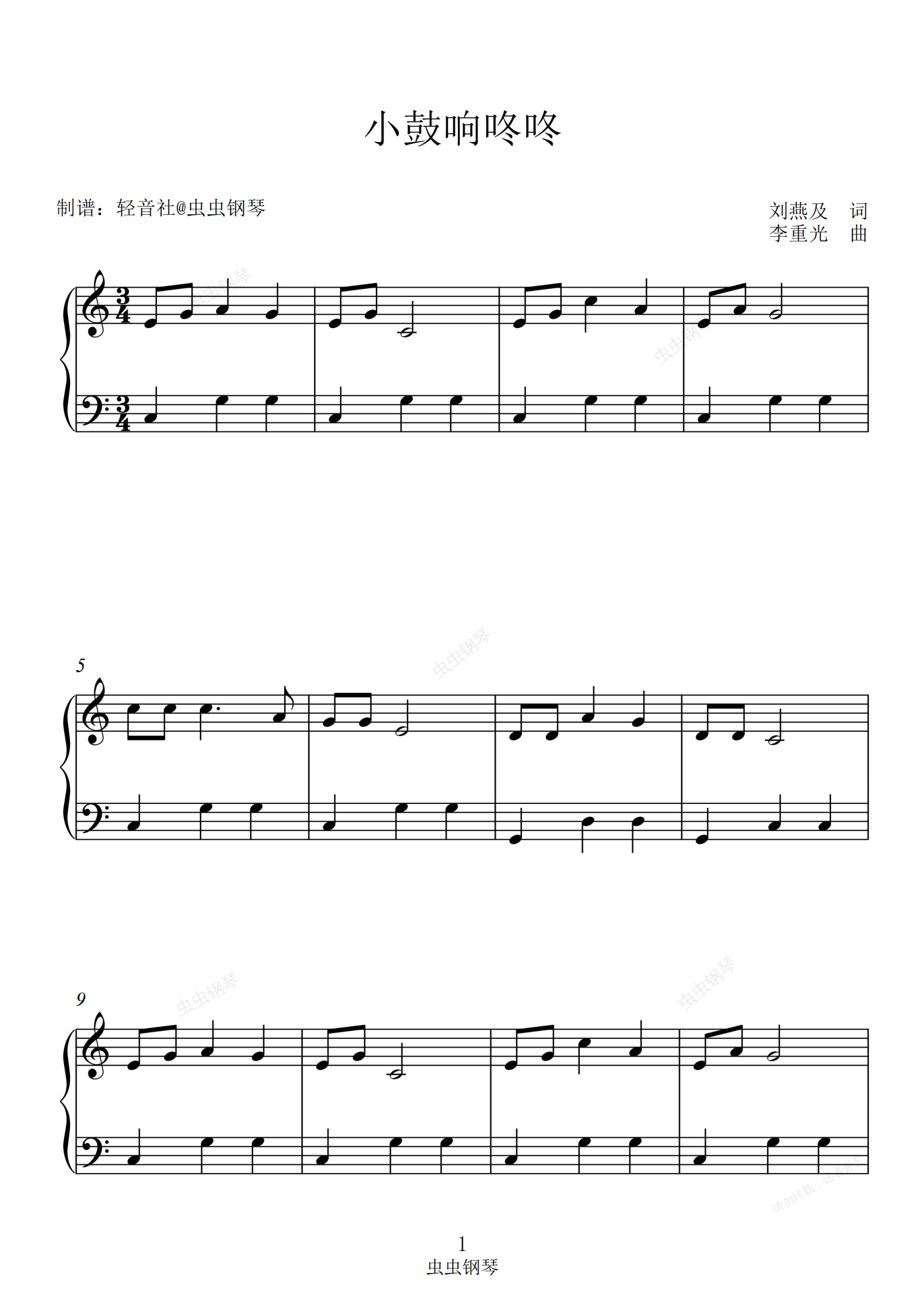 钢琴谱:《小鼓响咚咚》简单好弹易学儿童初学
