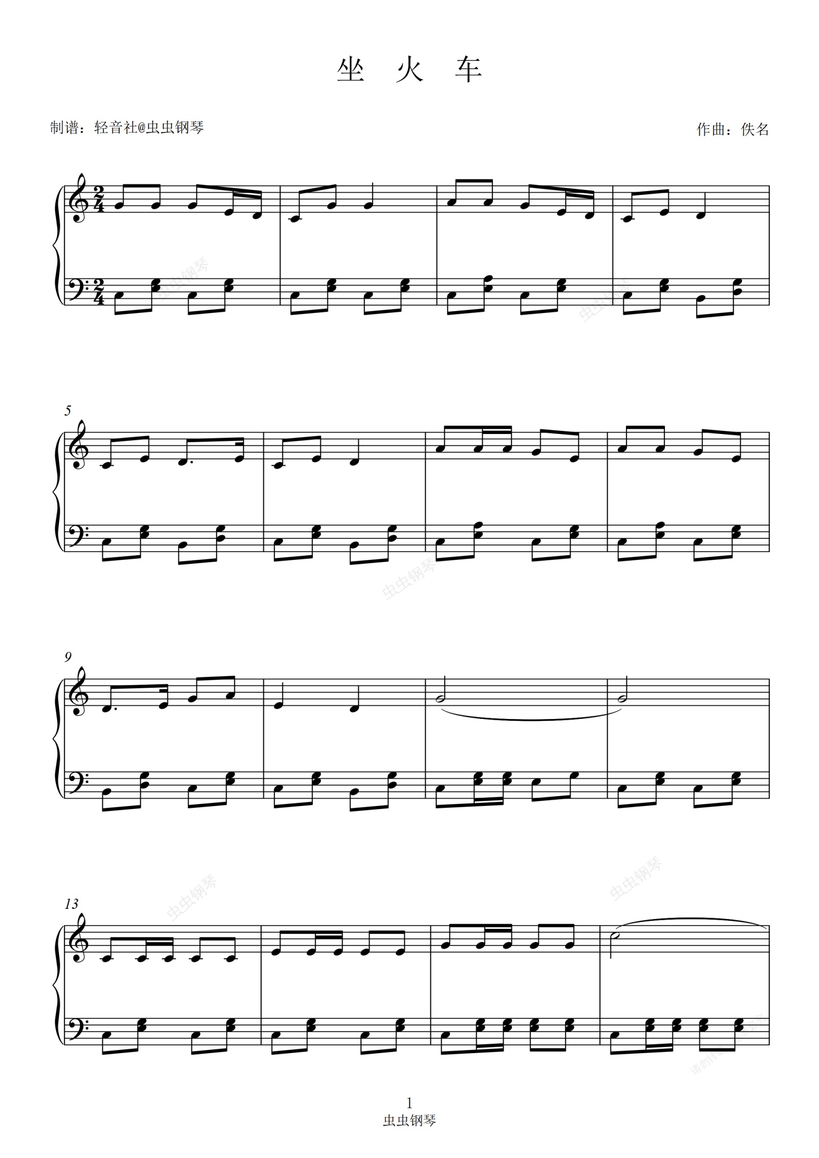 钢琴谱:《坐火车》容易好弹好听儿童初学简单