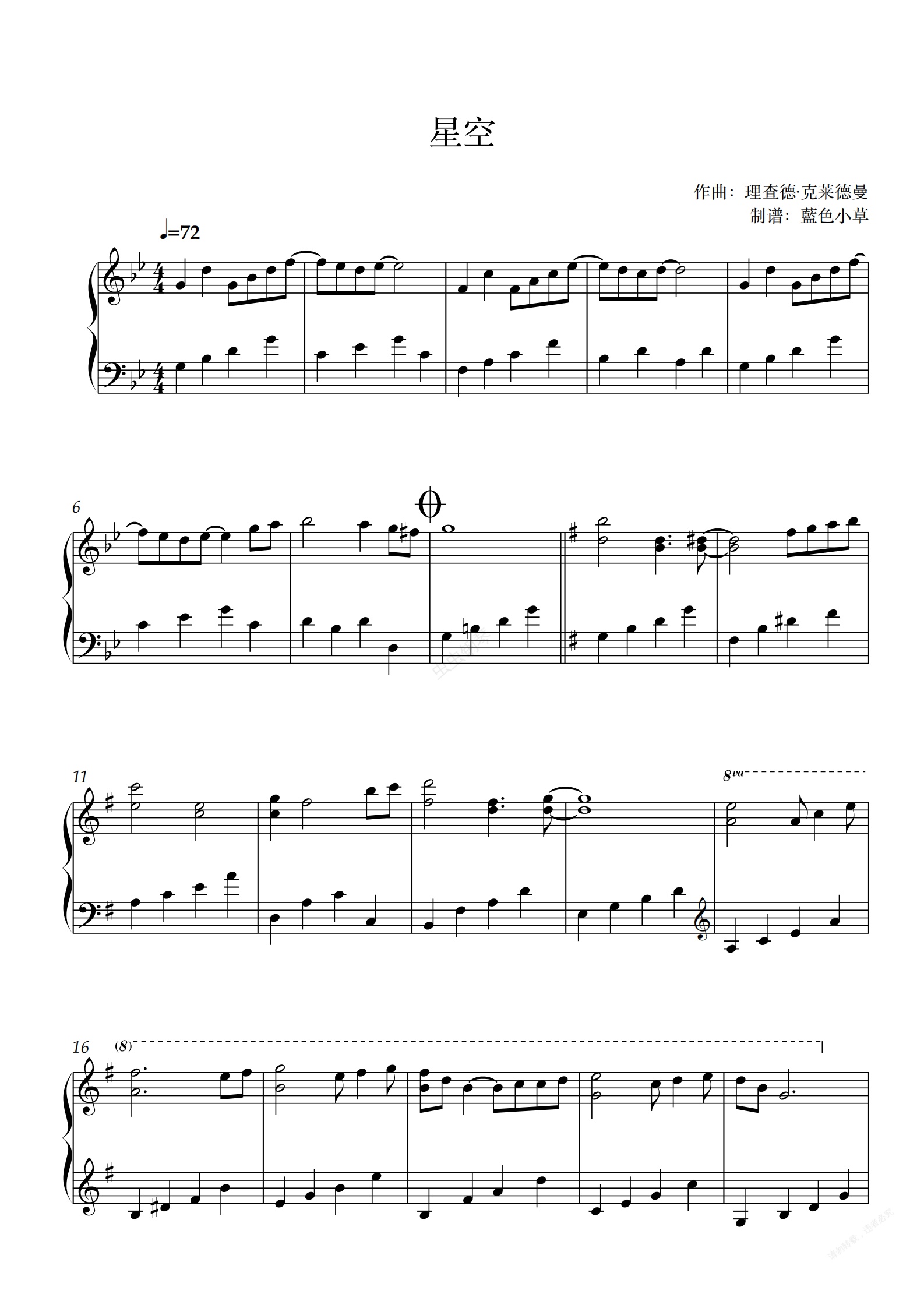 钢琴谱:星空的旋律(简单)