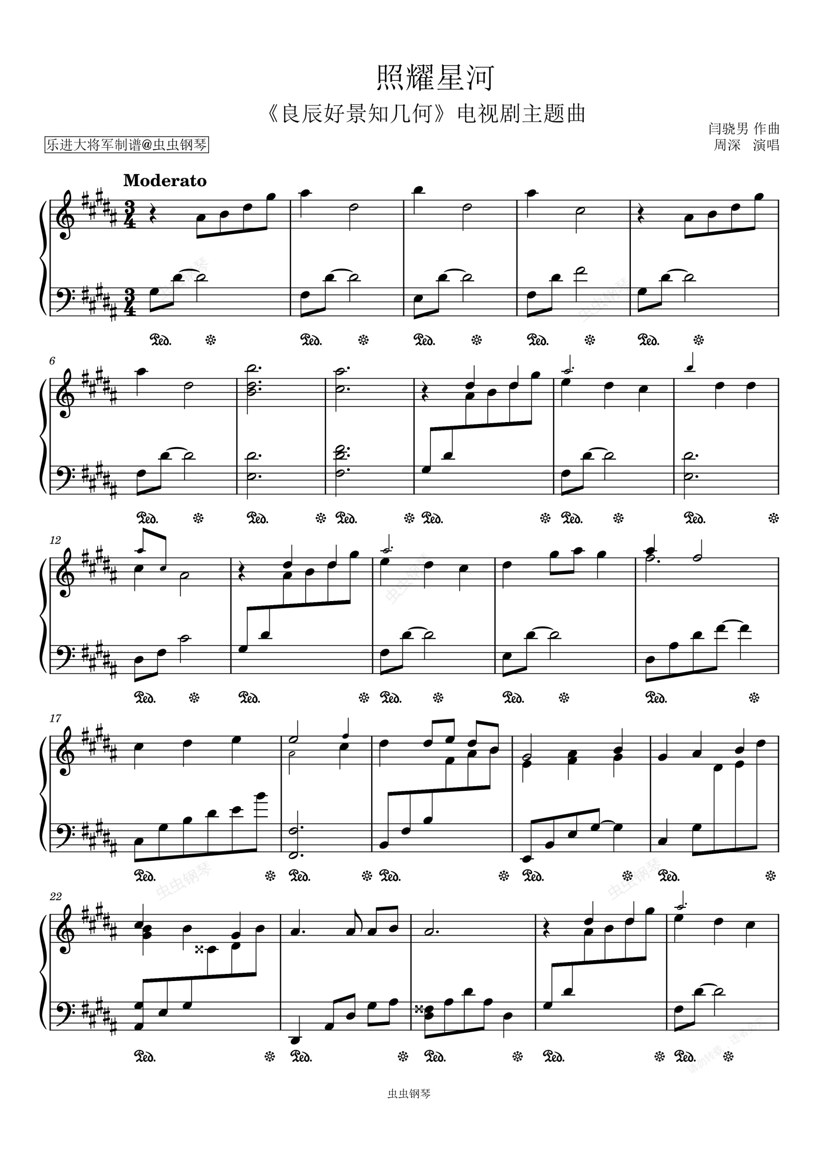 钢琴谱:照耀星河 深情优美版 (《良辰好景知几何》电视剧主题曲)