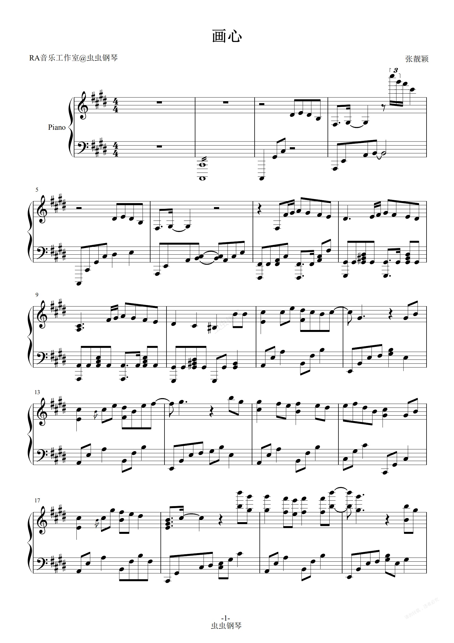 钢琴谱:画心-张靓颖-演奏谱