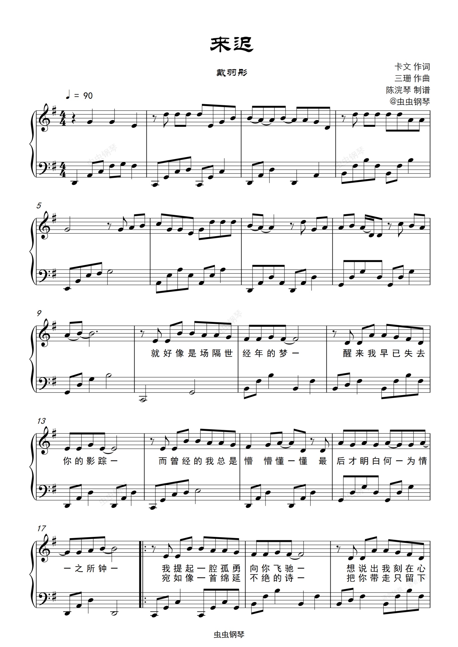 钢琴谱:来迟