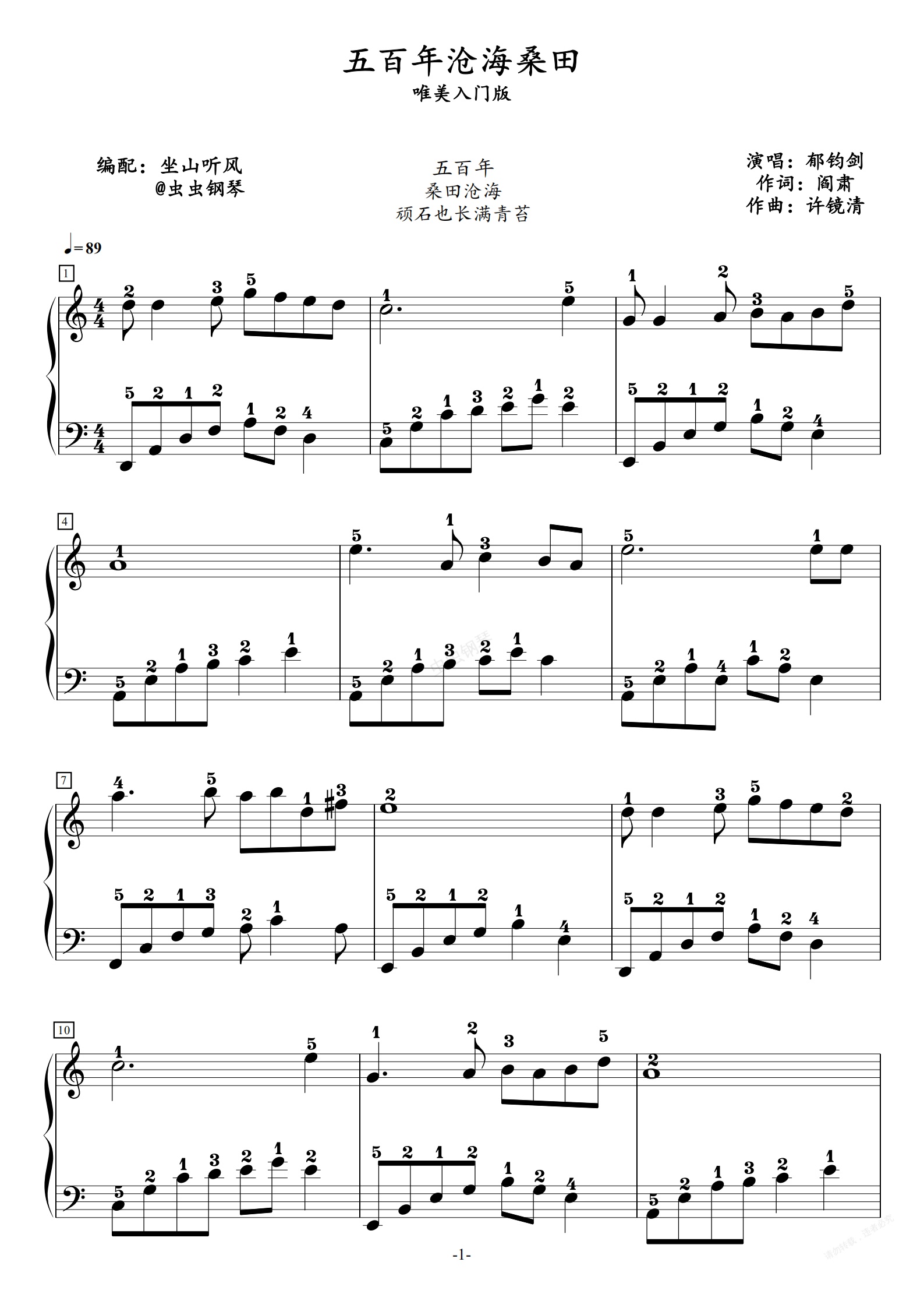 钢琴谱:五百年沧海桑田——唯美入门版