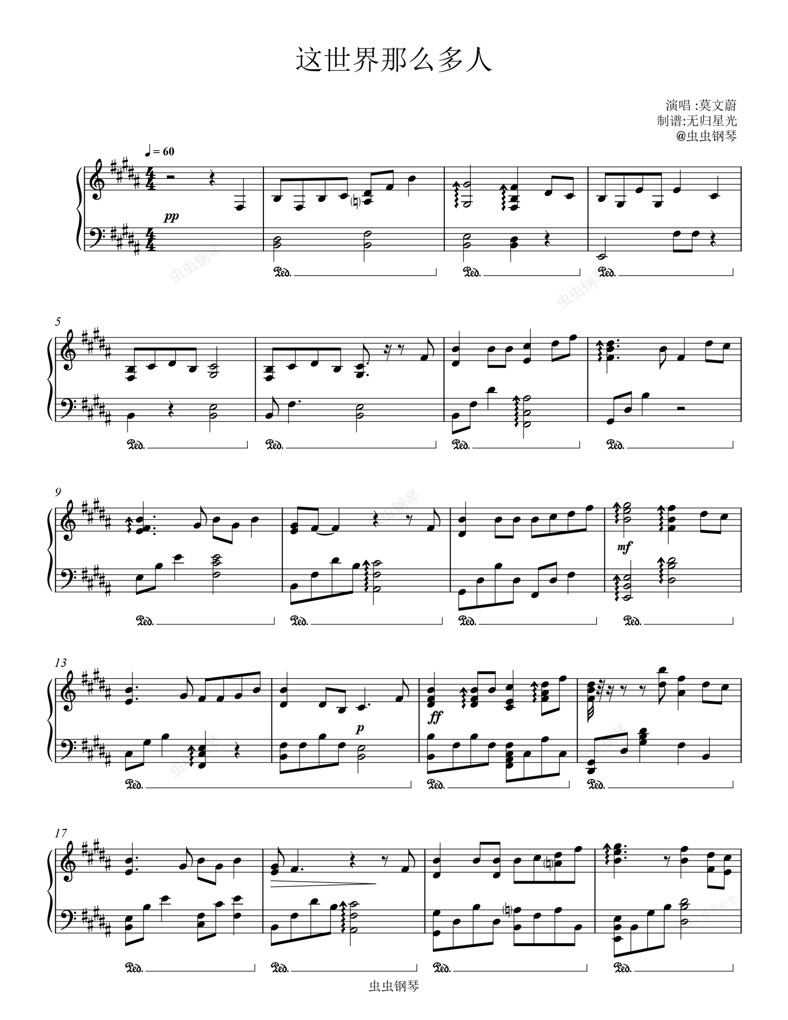 钢琴谱:这世界那么多人-原调完美演奏版