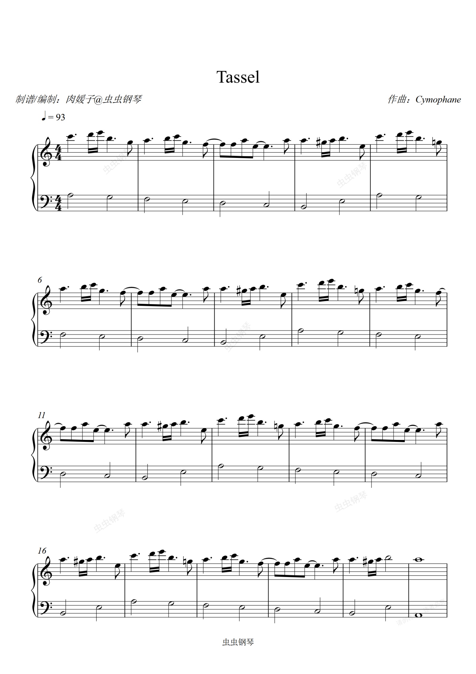 钢琴谱:Tassel - 【初级版 世界上最好听的纯音乐 】