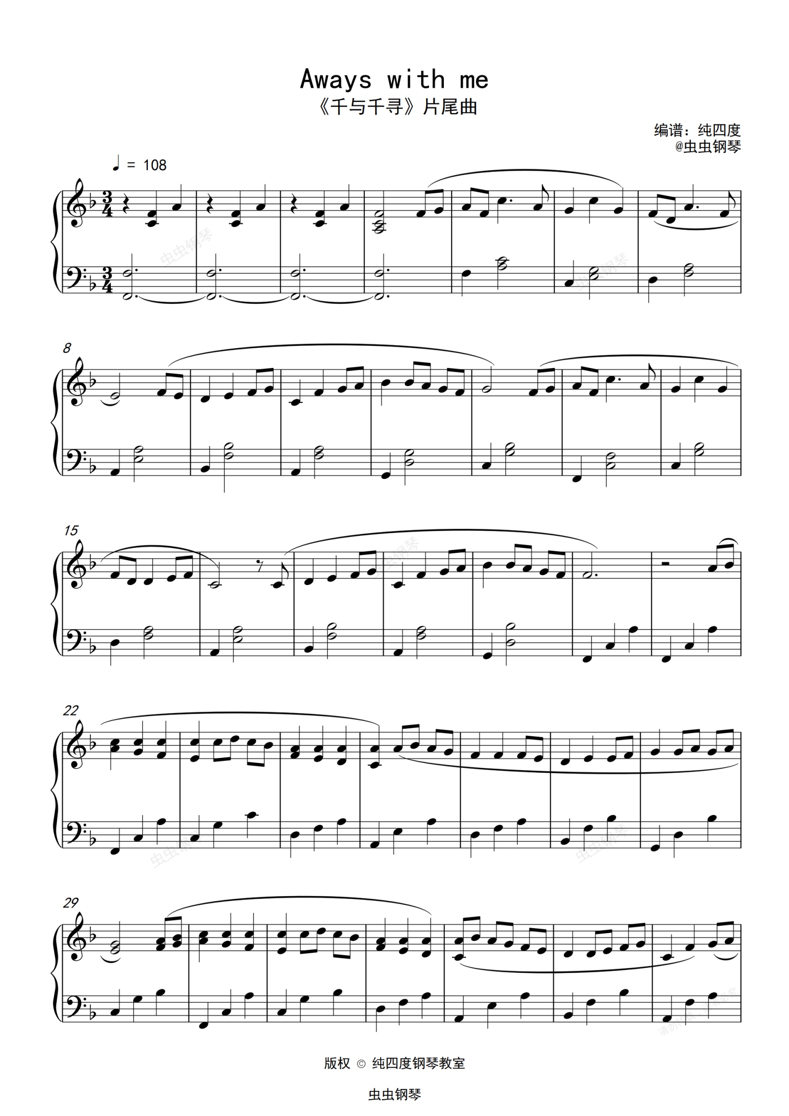 钢琴谱:Aways with me/いつも何度でも(《千与千寻片尾曲》)