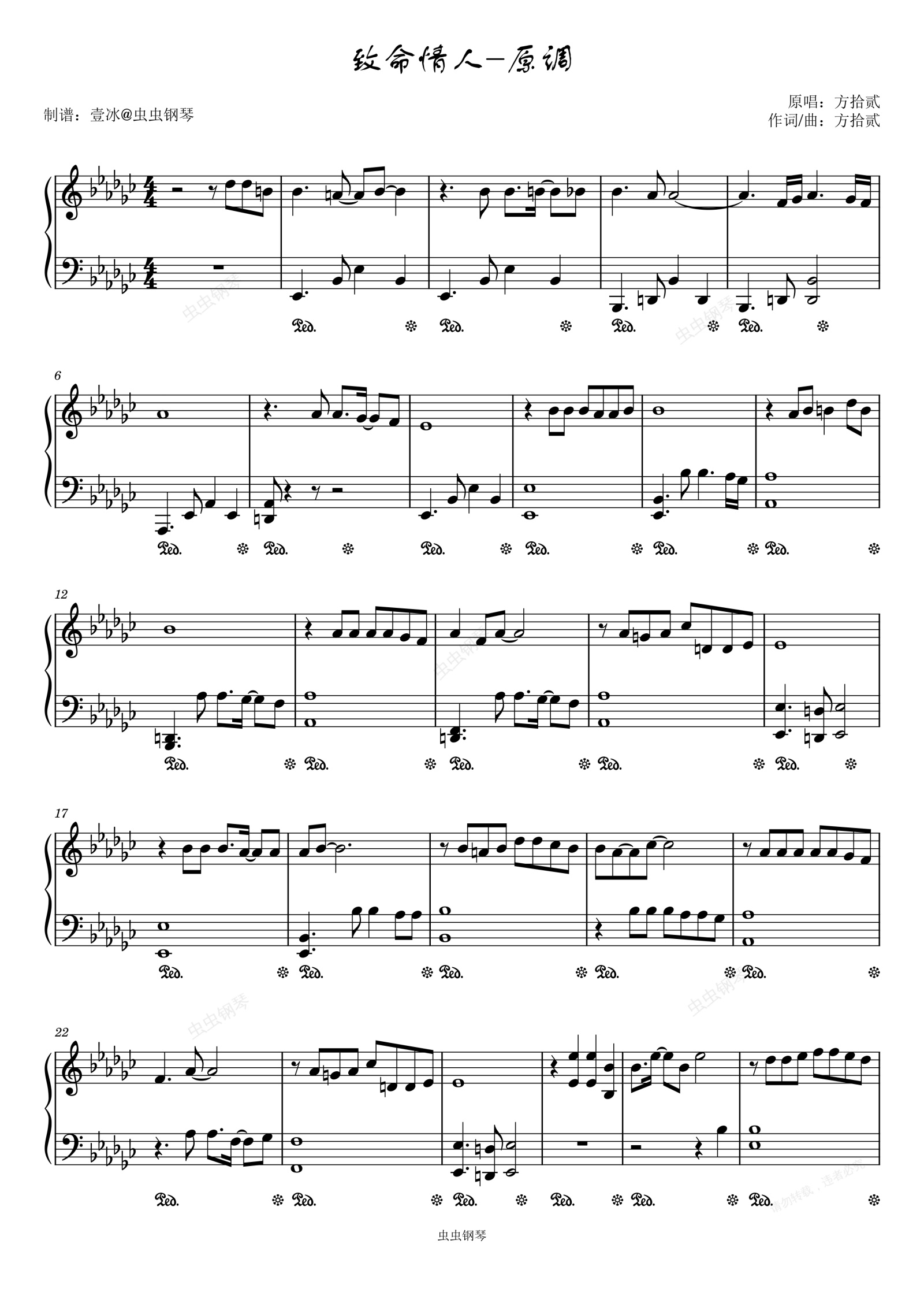 钢琴谱:致命情人//入夜我们谈恋爱-原调