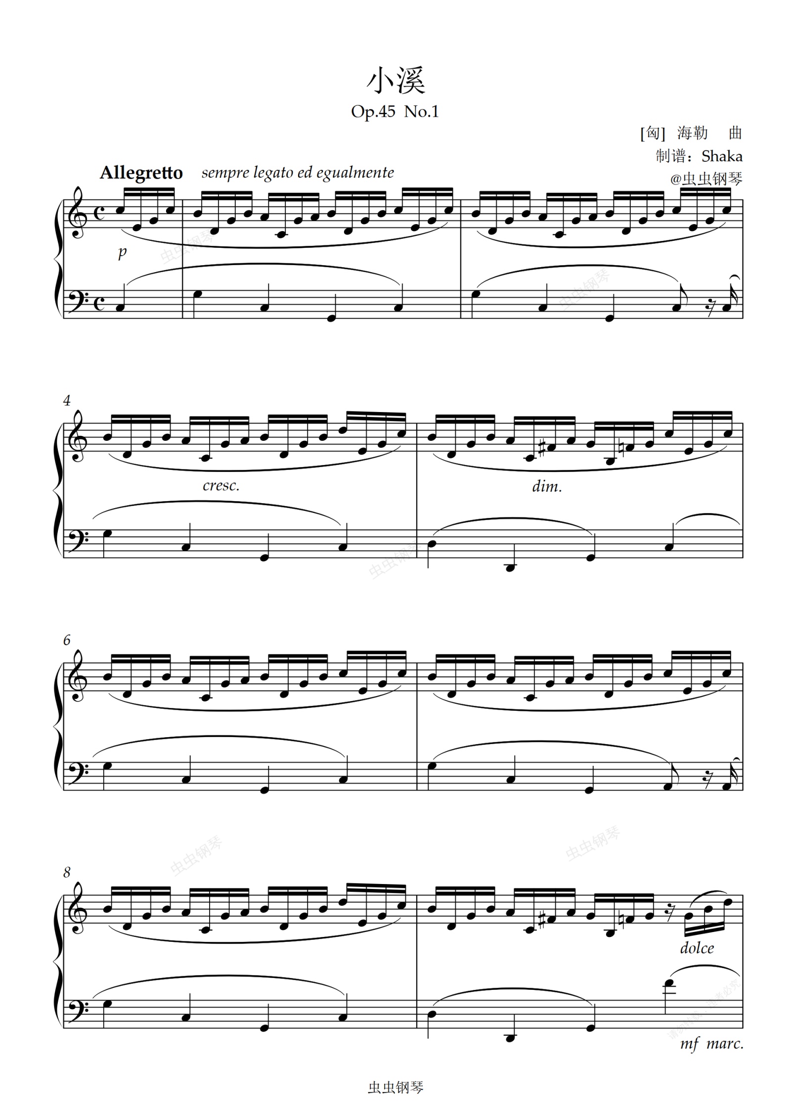 钢琴谱:小溪 Op.45 No.1 全国音协四级A-3 钢琴考级曲目