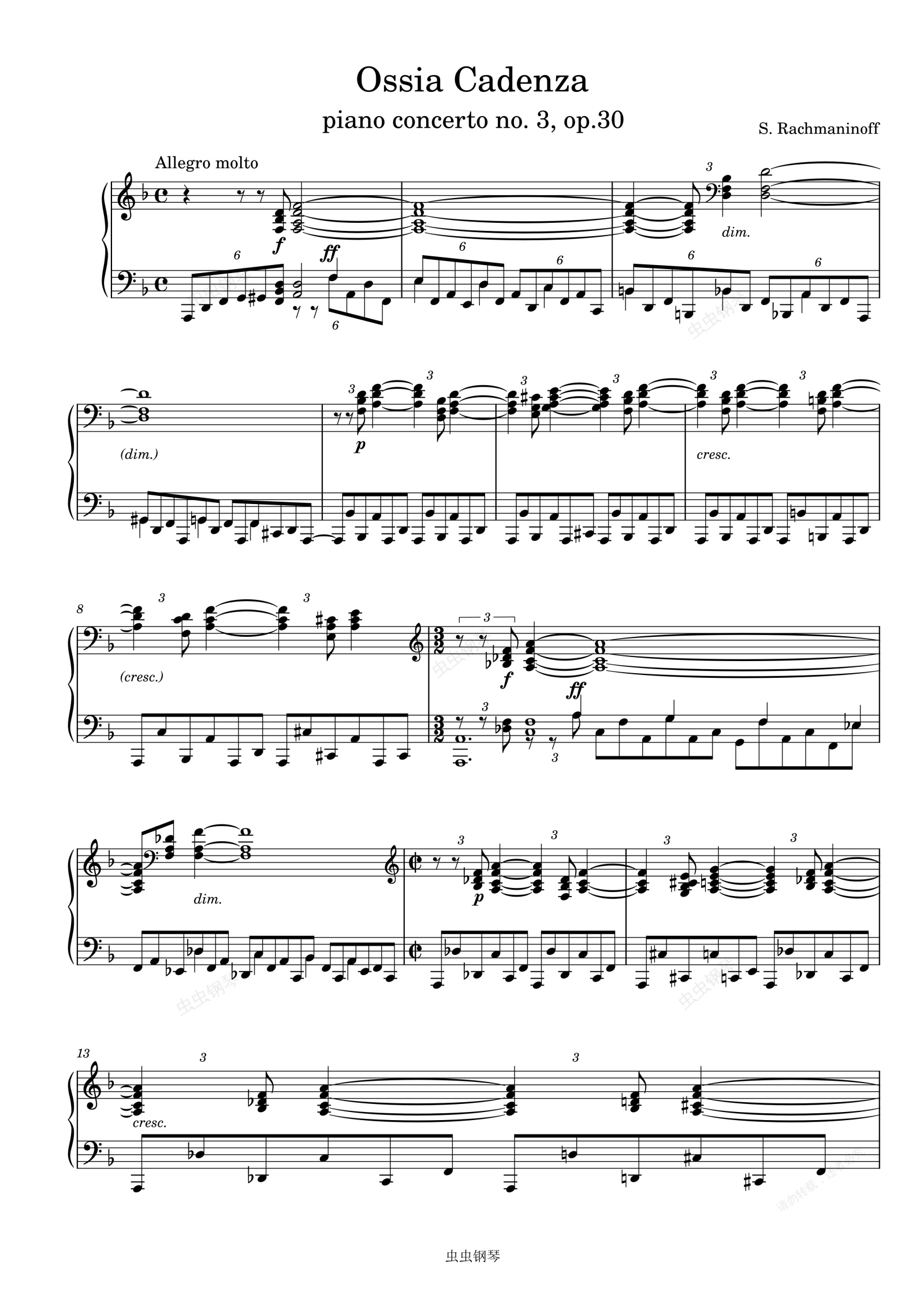 钢琴谱:Ossia Cadenza from Rachmaninoff's concerto no.3 in d minor, op.30