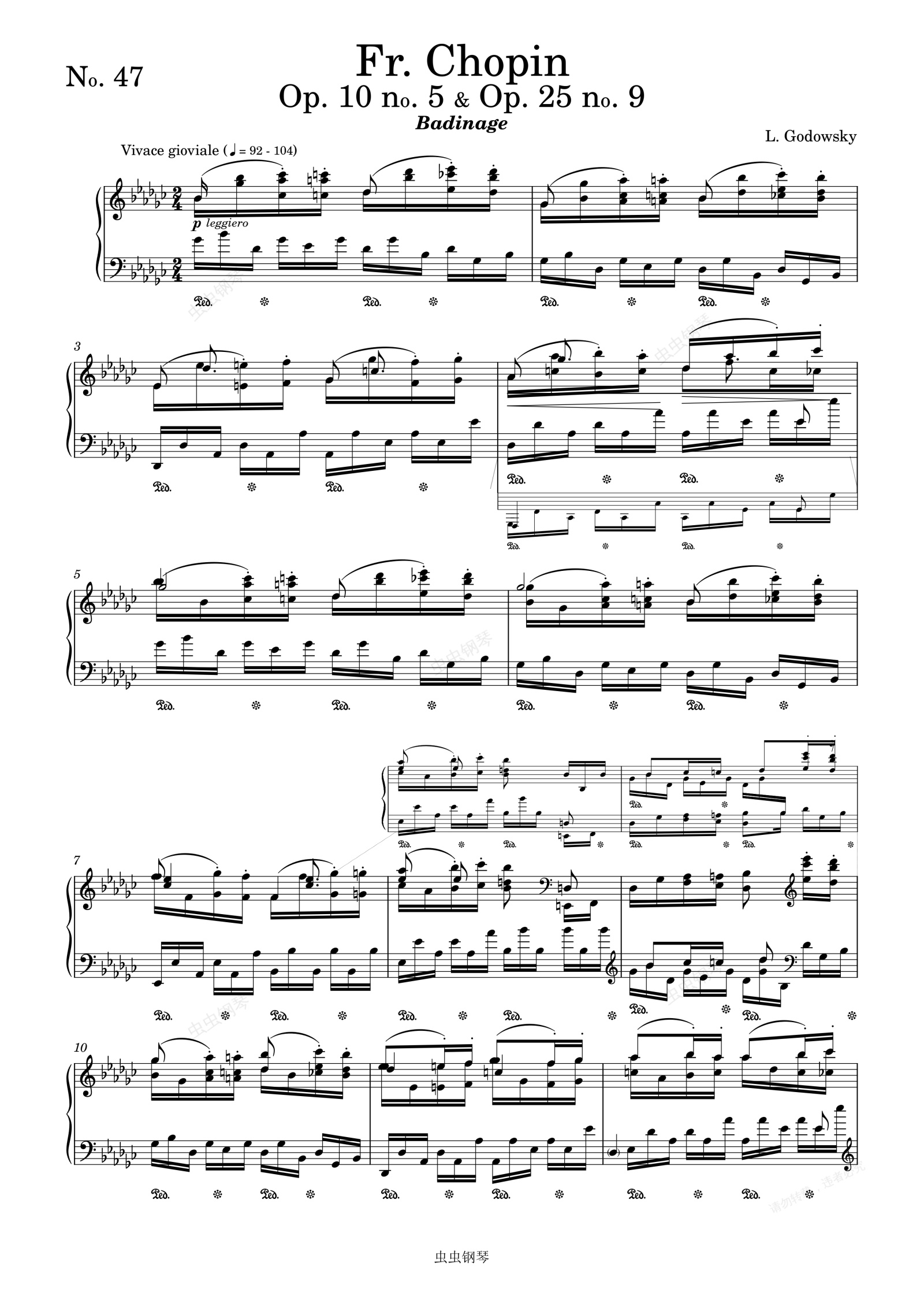 钢琴谱:Godowsky - Study in G-flat major after Chopin's op.10 no.5 and op.25 no.9