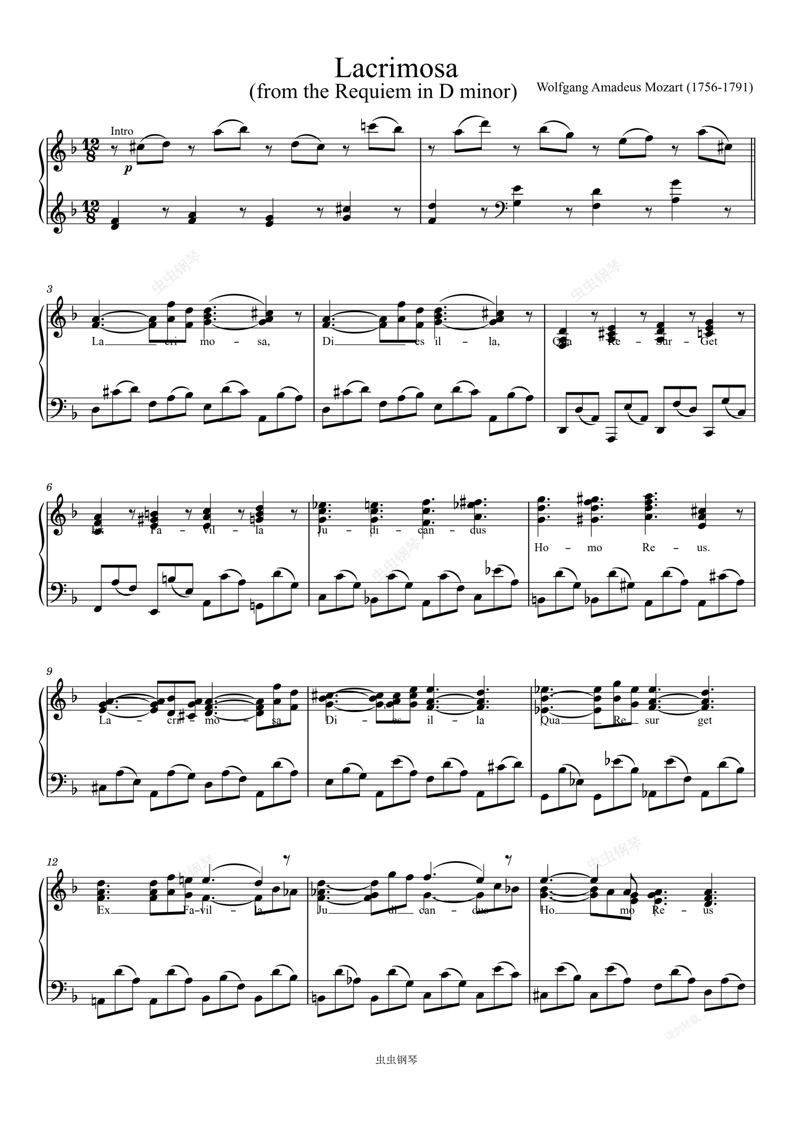 钢琴谱:Mozart - Lacrimosa (from the Requiem in D minor)