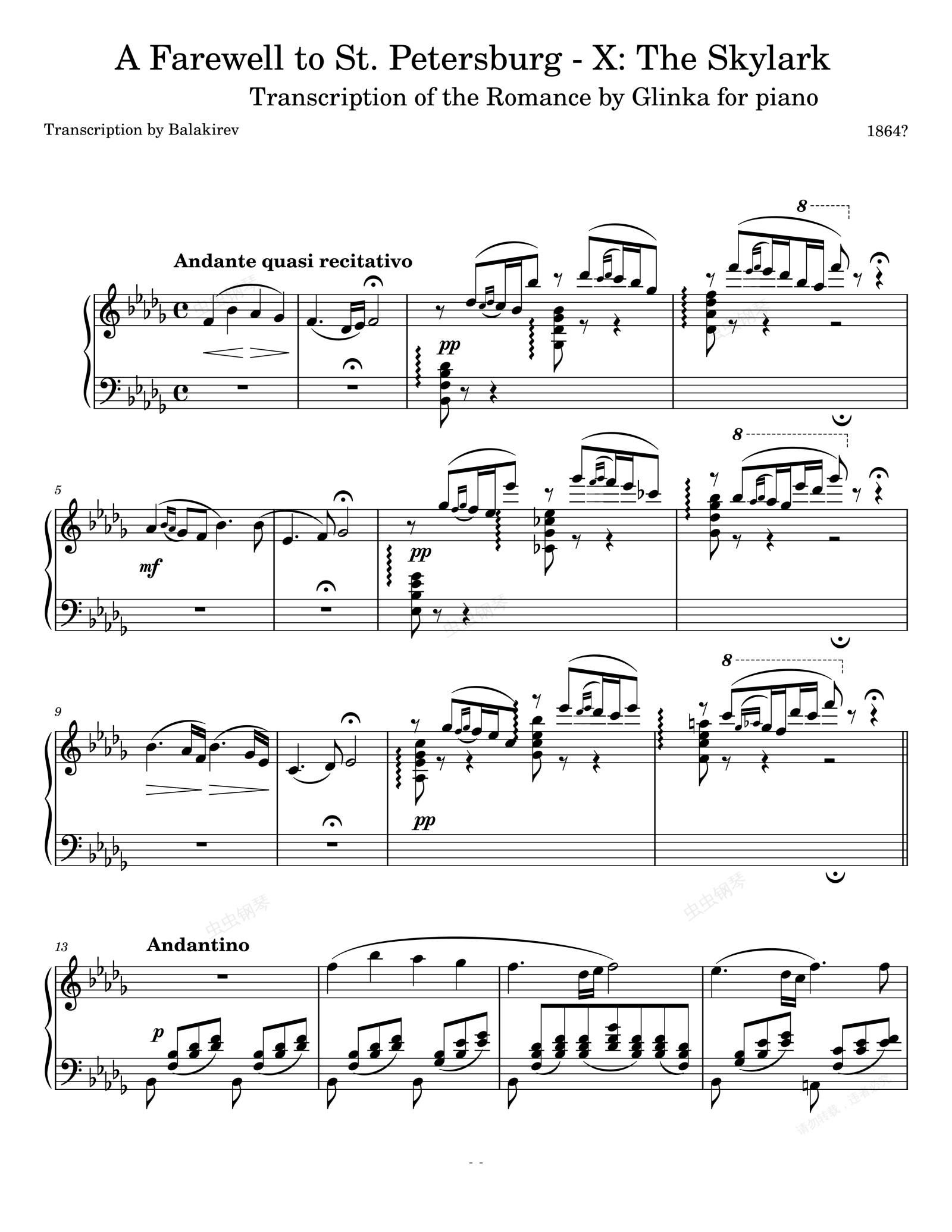 钢琴谱:Glinka/Balakirev - A Farewell to St. Petersburg, X: The Skylark for Solo Piano