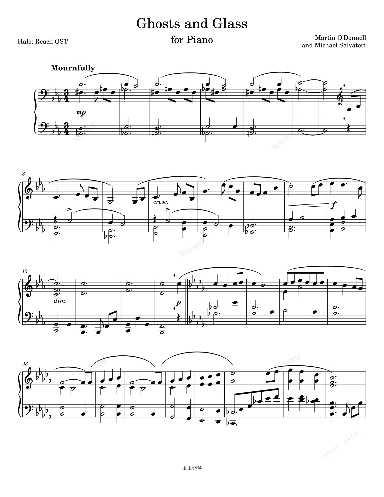 钢琴谱:O'Donnell/Salvatori - Ghosts and Glass for Piano (Halo: Reach OST)