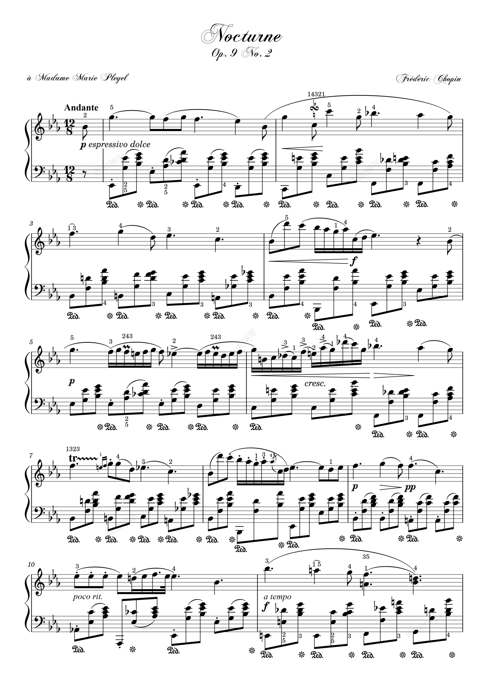 钢琴谱:降E大调夜曲