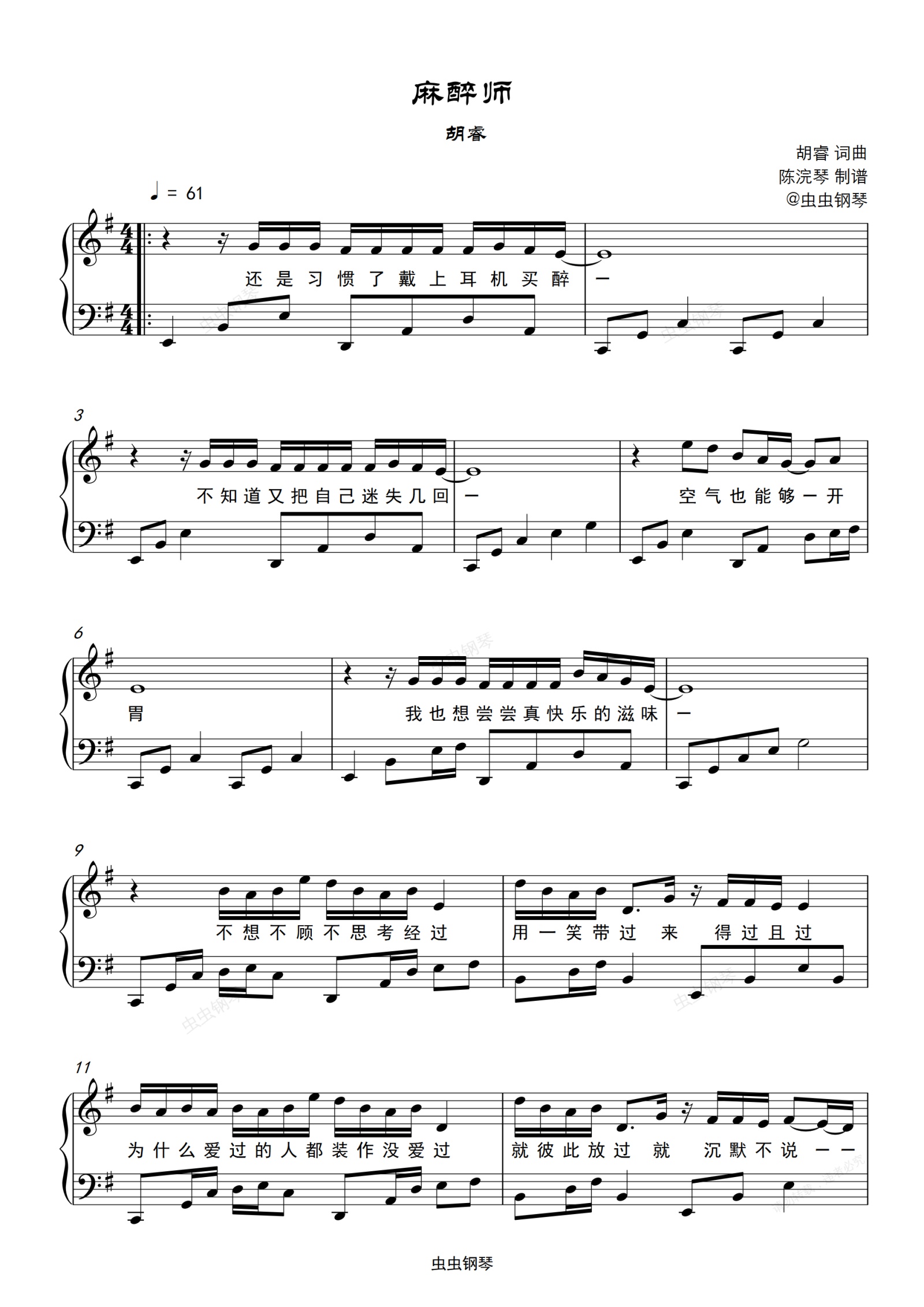 钢琴谱:麻醉师