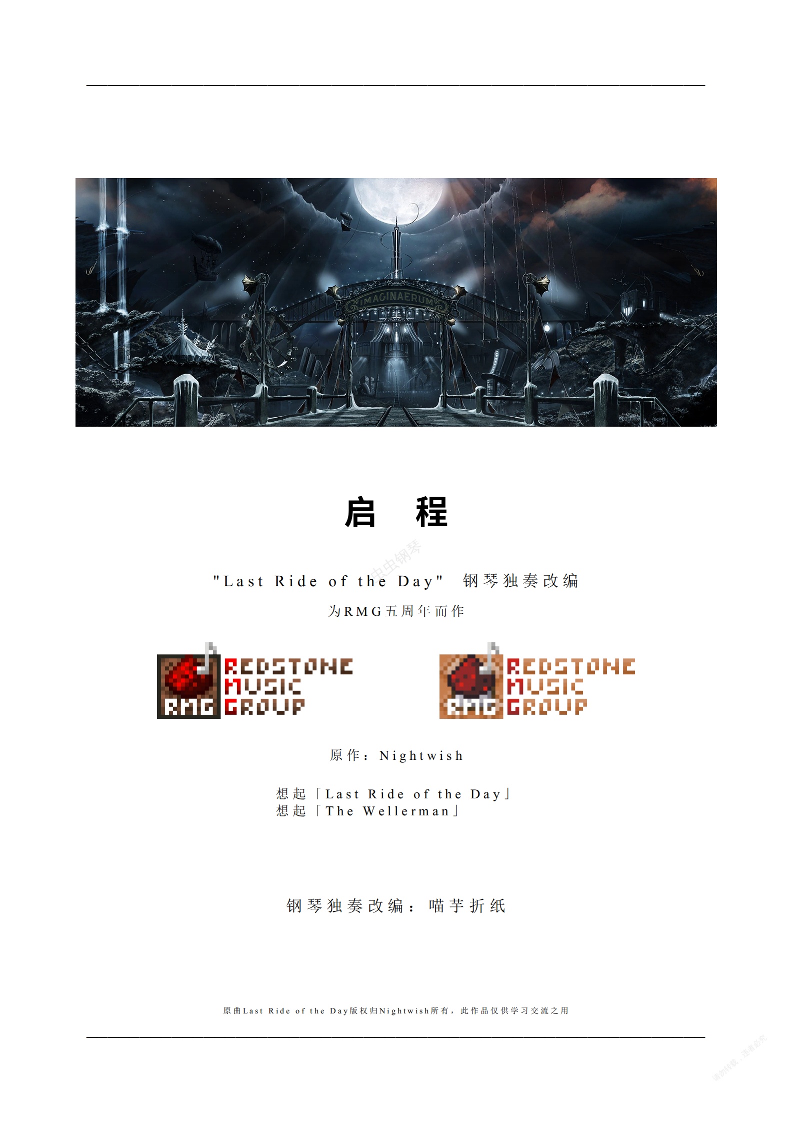钢琴谱:启程(Last Ride of the Day Pno. Ver.)