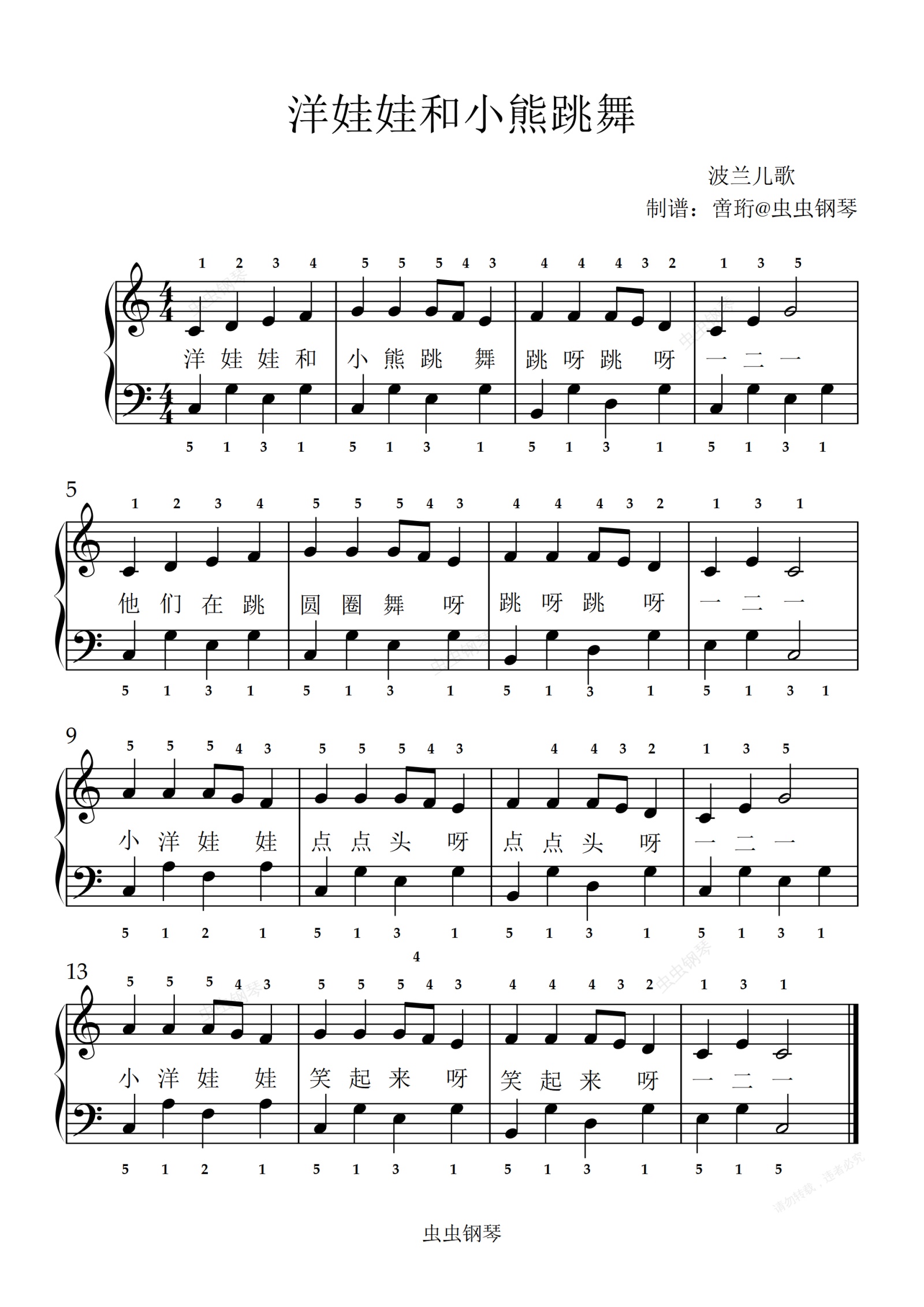 钢琴谱:【免费】洋娃娃和小熊跳舞 中音 简单动听
