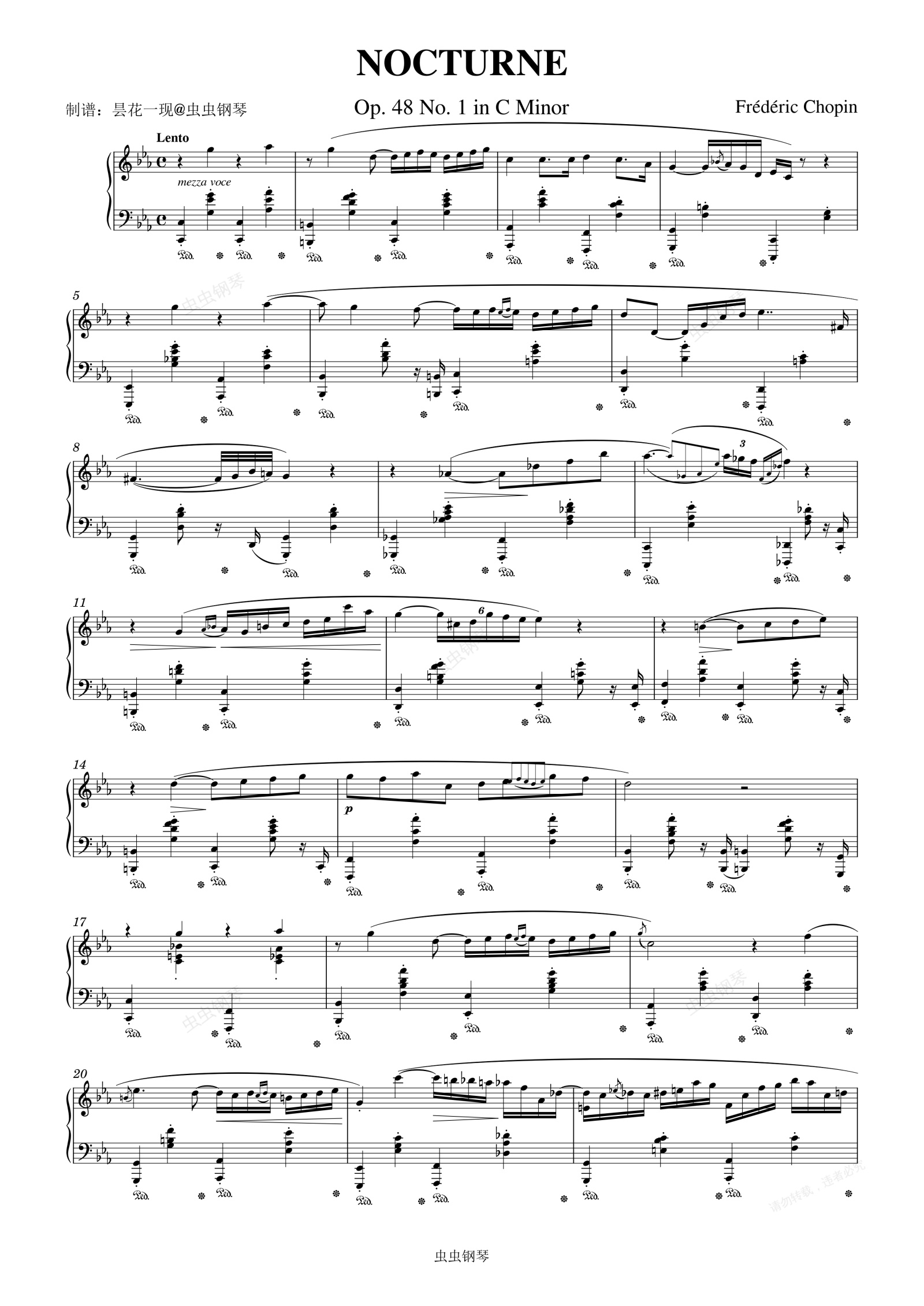 钢琴谱:C小调夜曲 Op. 48 No 肖邦