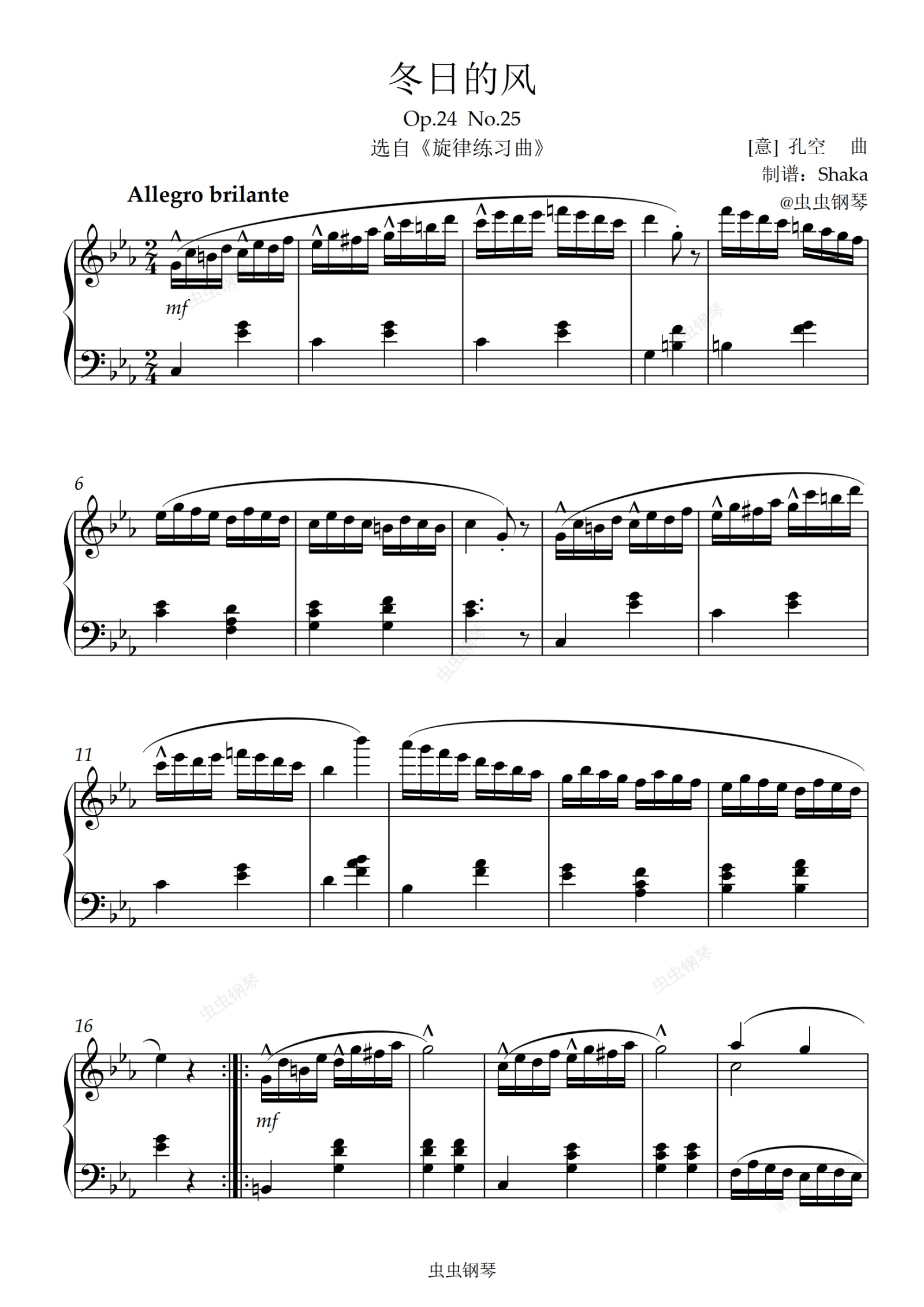 钢琴谱:冬日的风 c小调版 全国音协4级A-1考级曲目 完美转调版