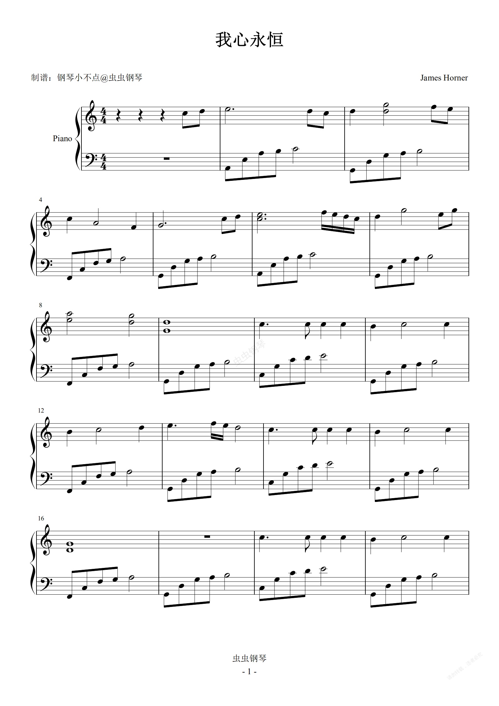 钢琴谱:我心永恒 My Heart Will Go On 【二级难度】