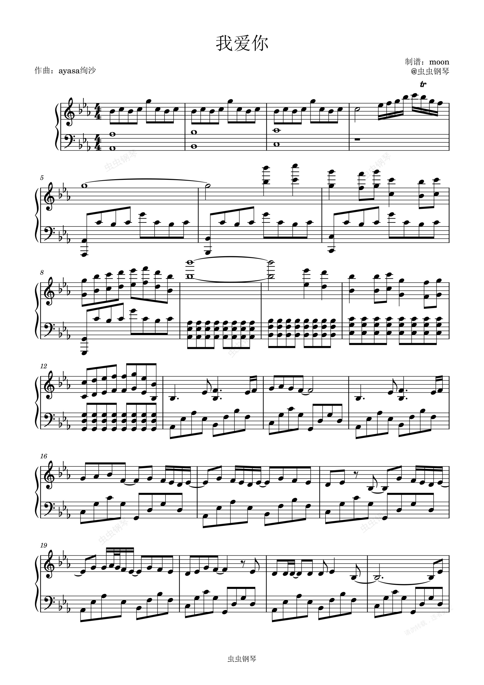 钢琴谱:我爱你 超火小提琴曲Ayasa绚沙原调