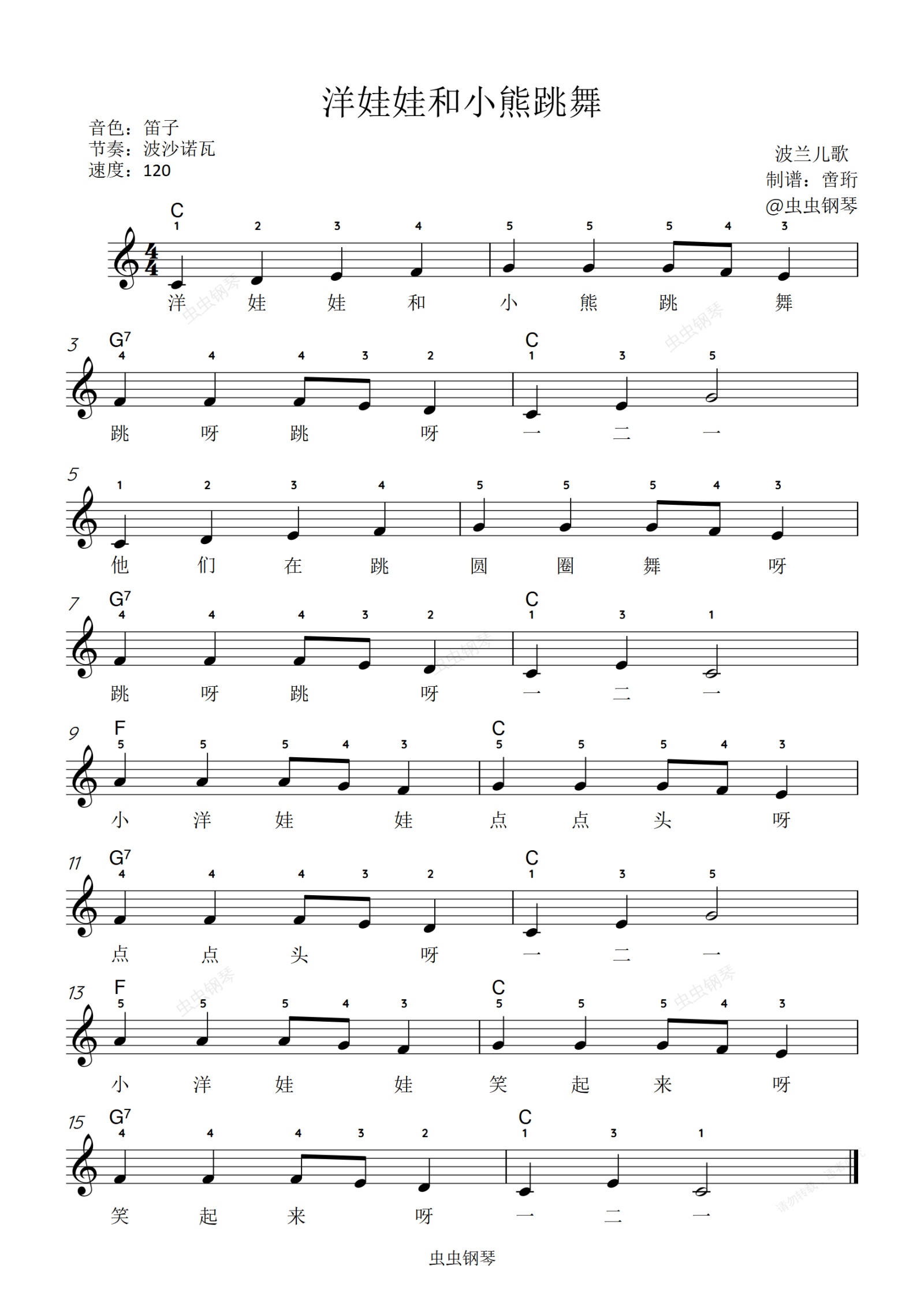 钢琴谱:【免费】洋娃娃和小熊跳舞电子琴低音版