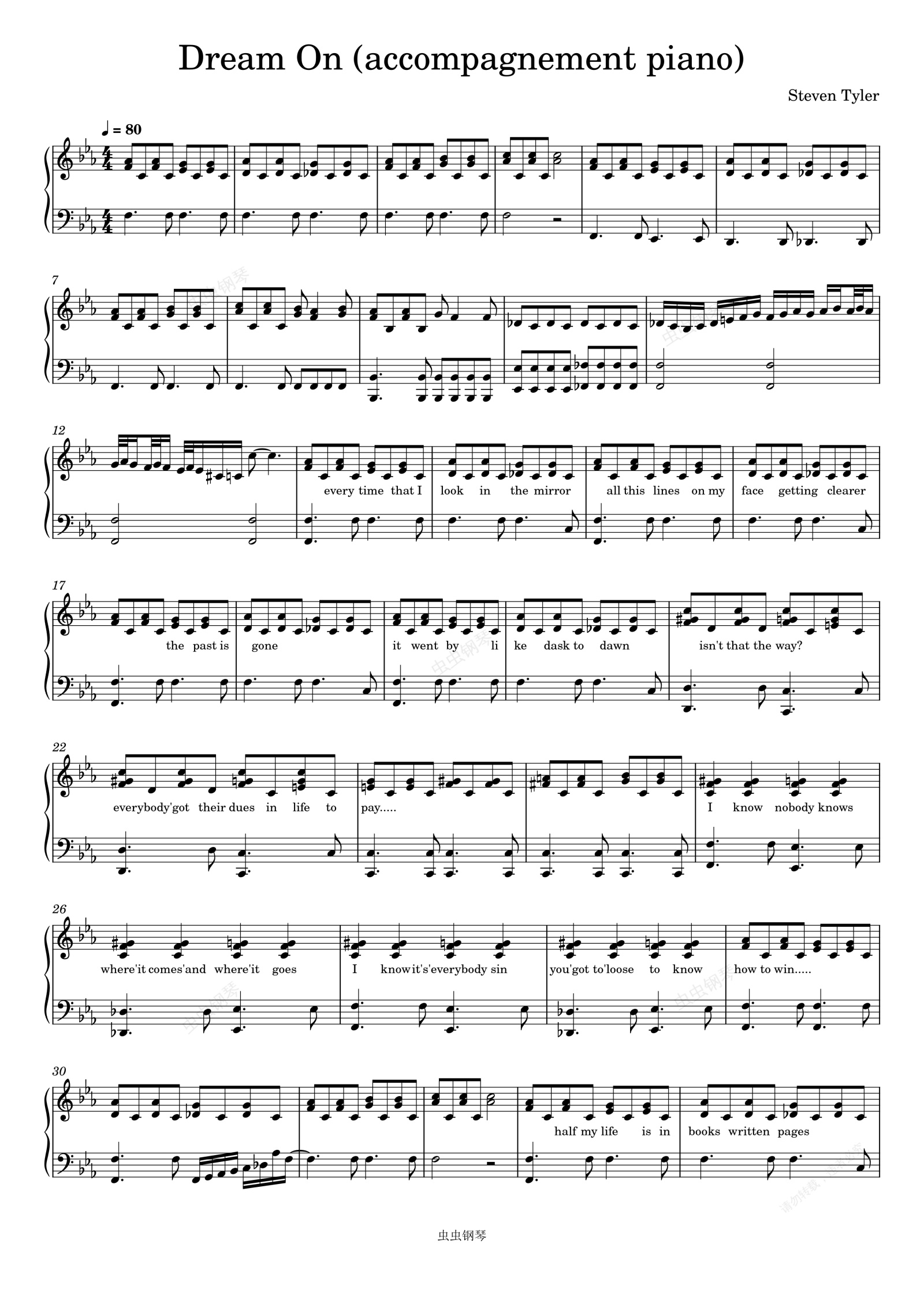 钢琴谱:Dream On-Steven Tyler