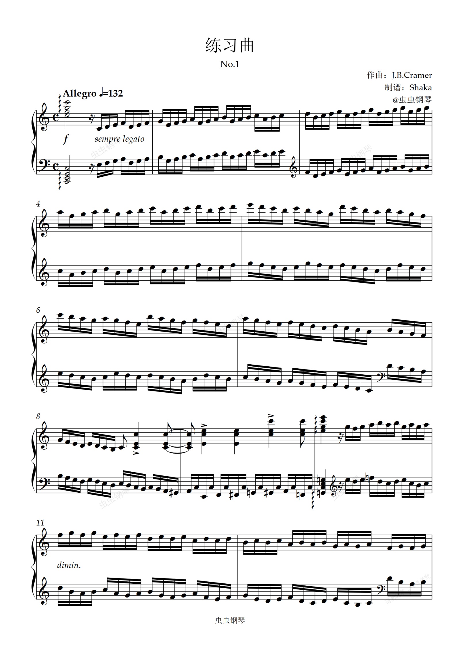 钢琴谱:练习曲 No.1 J.B.Cramer 全国音协6级A-1考级曲目