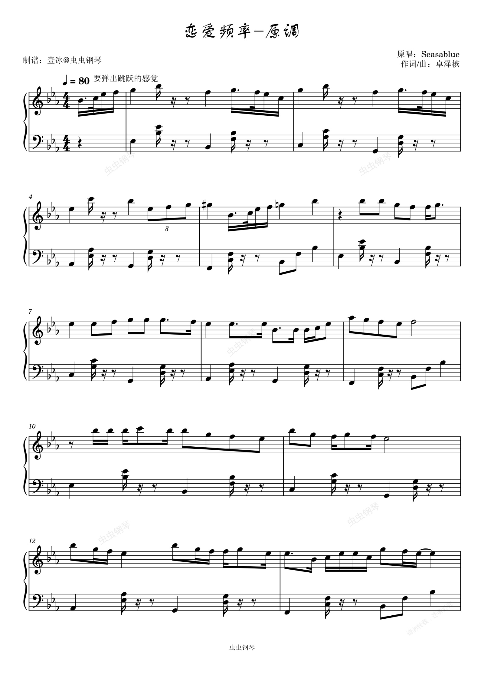 钢琴谱:恋爱频率// Sasablue-原调版