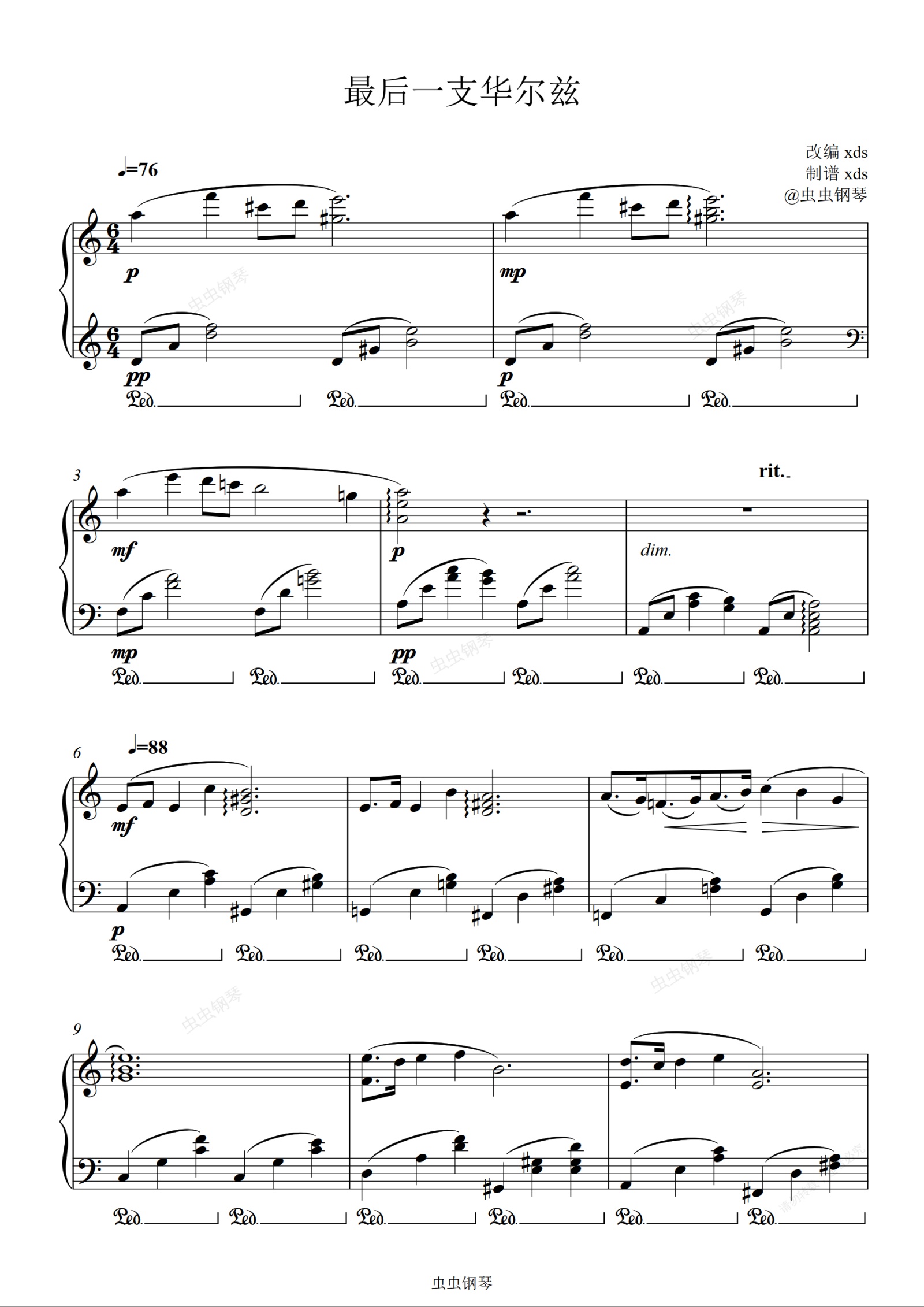 钢琴谱:《最后一首华尔兹》a小调 版本