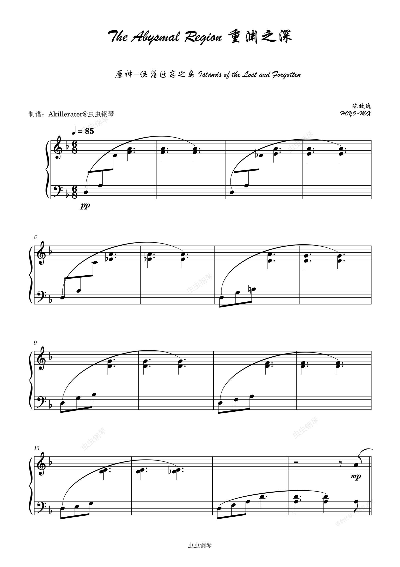 钢琴谱:The Abysmal Region 重渊之深《原神-佚落迁忘之岛 Islands of the Lost and Forgotten》