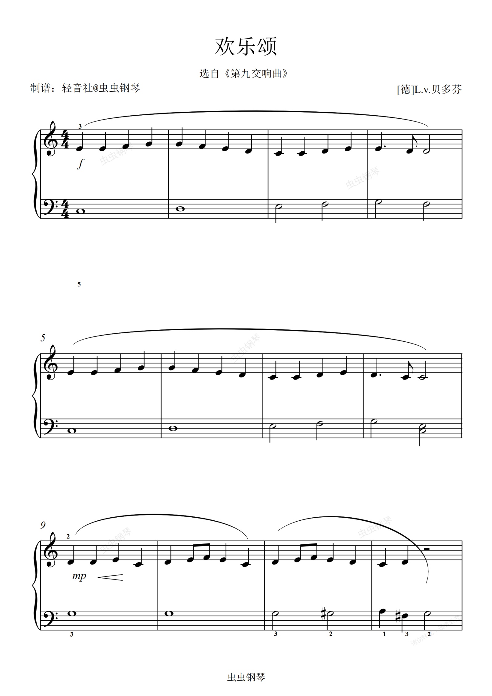 钢琴谱:《欢乐颂》简单好弹好听儿童初学