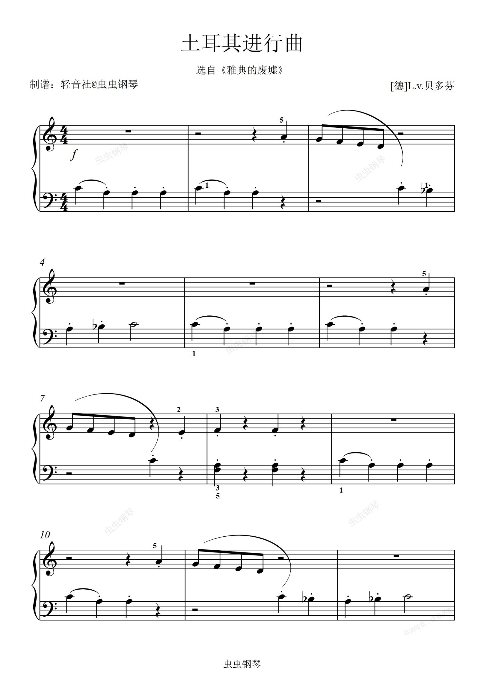 钢琴谱:《土耳其进行曲》好听好弹经典简单儿童初学